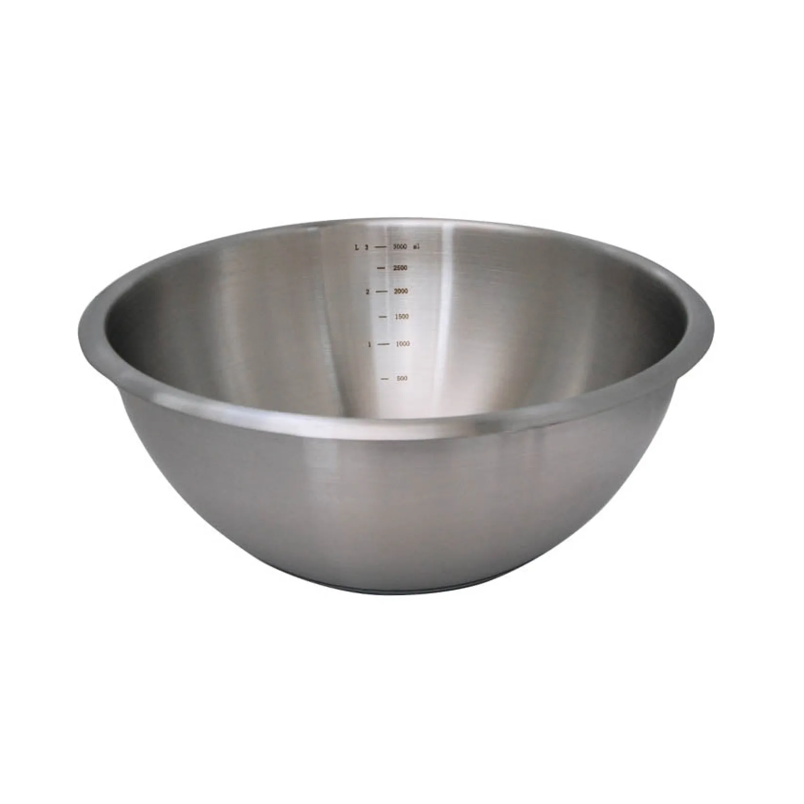 The De Buyer hemisphere mixing bowl is 24cm in diameter and has a capacity of 3.6 litres. A scale is laser-engraved on the inside, so you can see at a glance the volume of ingredients or mixture in the bowl.