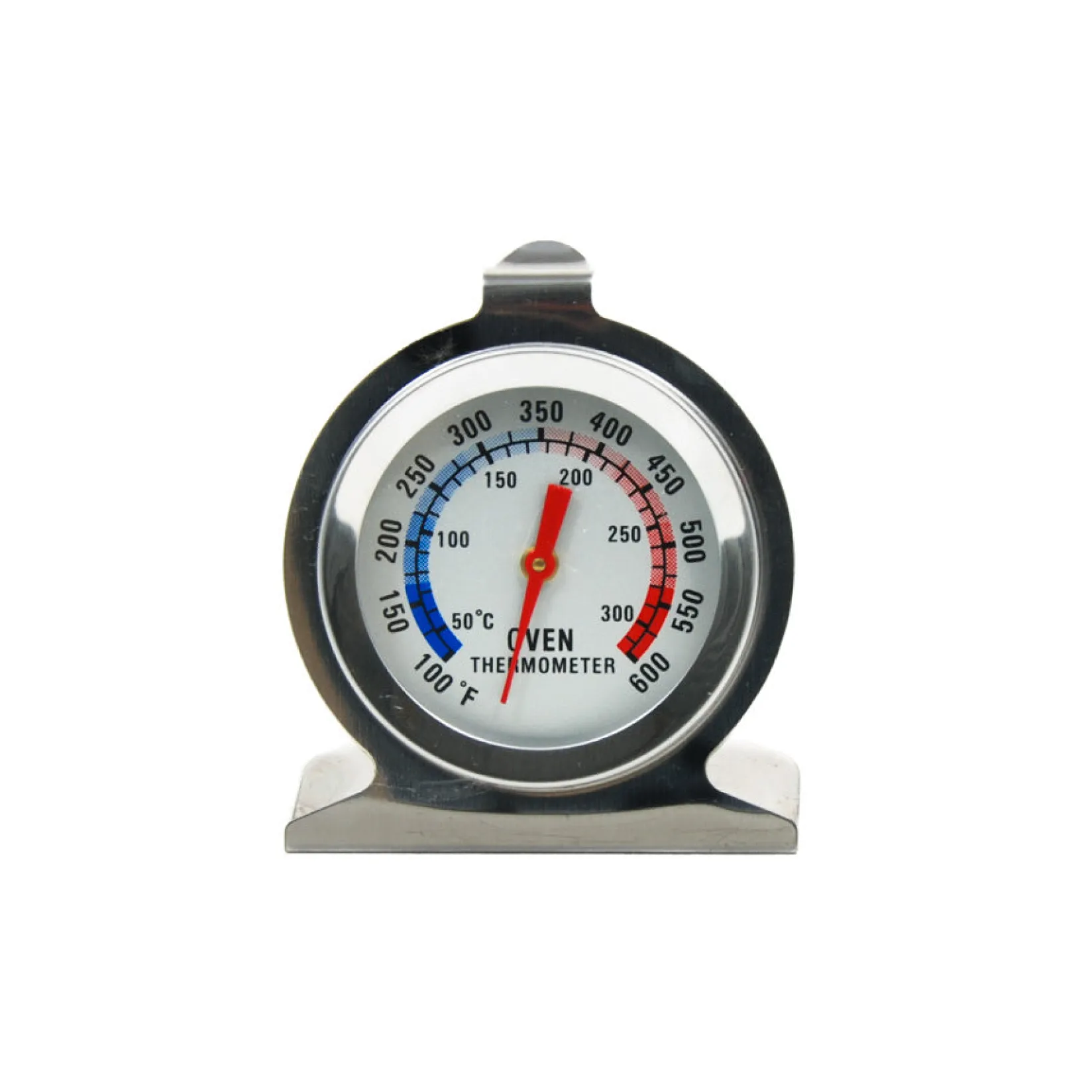 This oven thermometer has temperatures in both centigrade and farenheit, and reads from 50°C to 300°C.