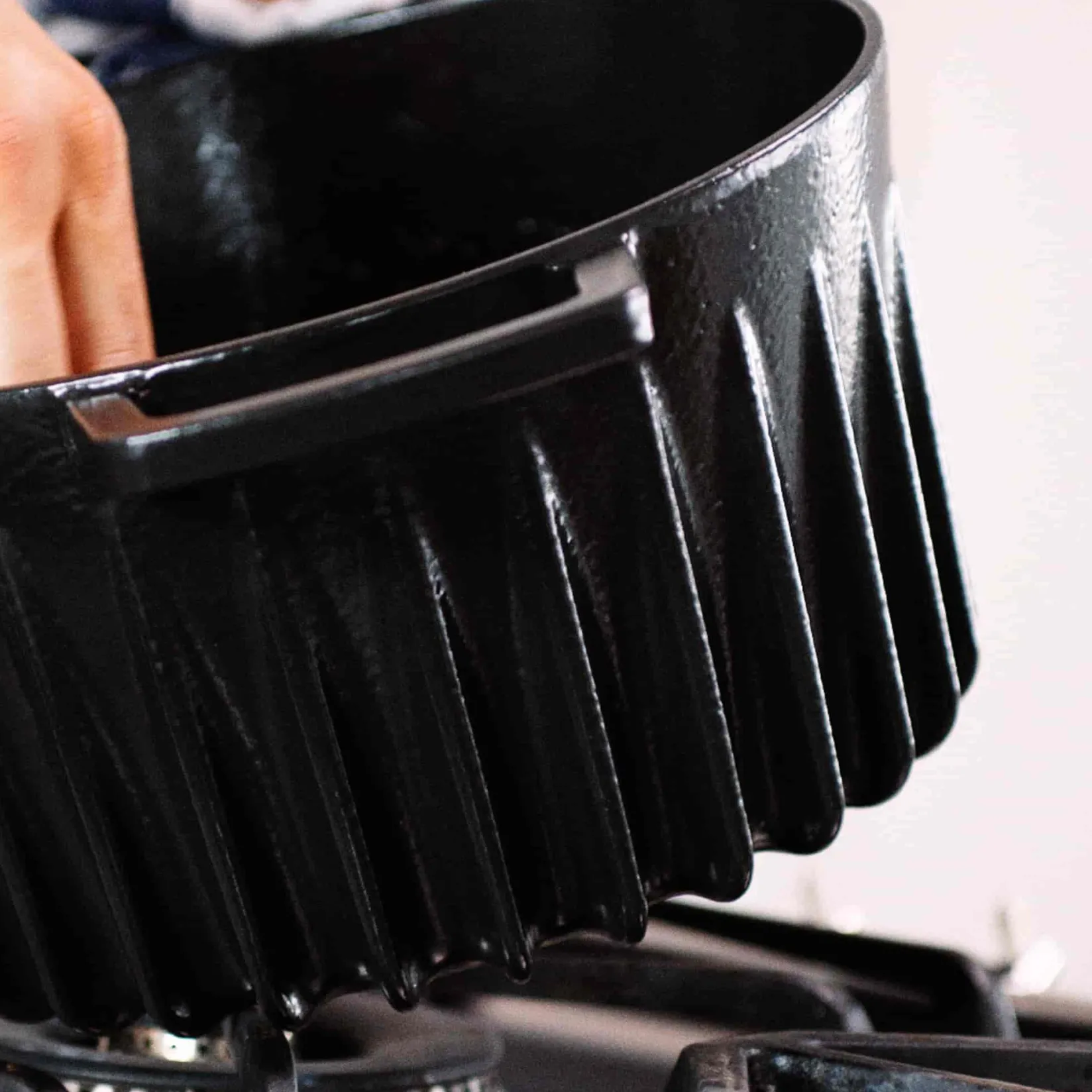 Bake, braise and sauté in the FIREUP black Dutch oven. Made from durable cast iron, it’s oven-safe and can be used on all kinds of stovetop. The pan heats quickly and evenly, thanks to its unique fin design.