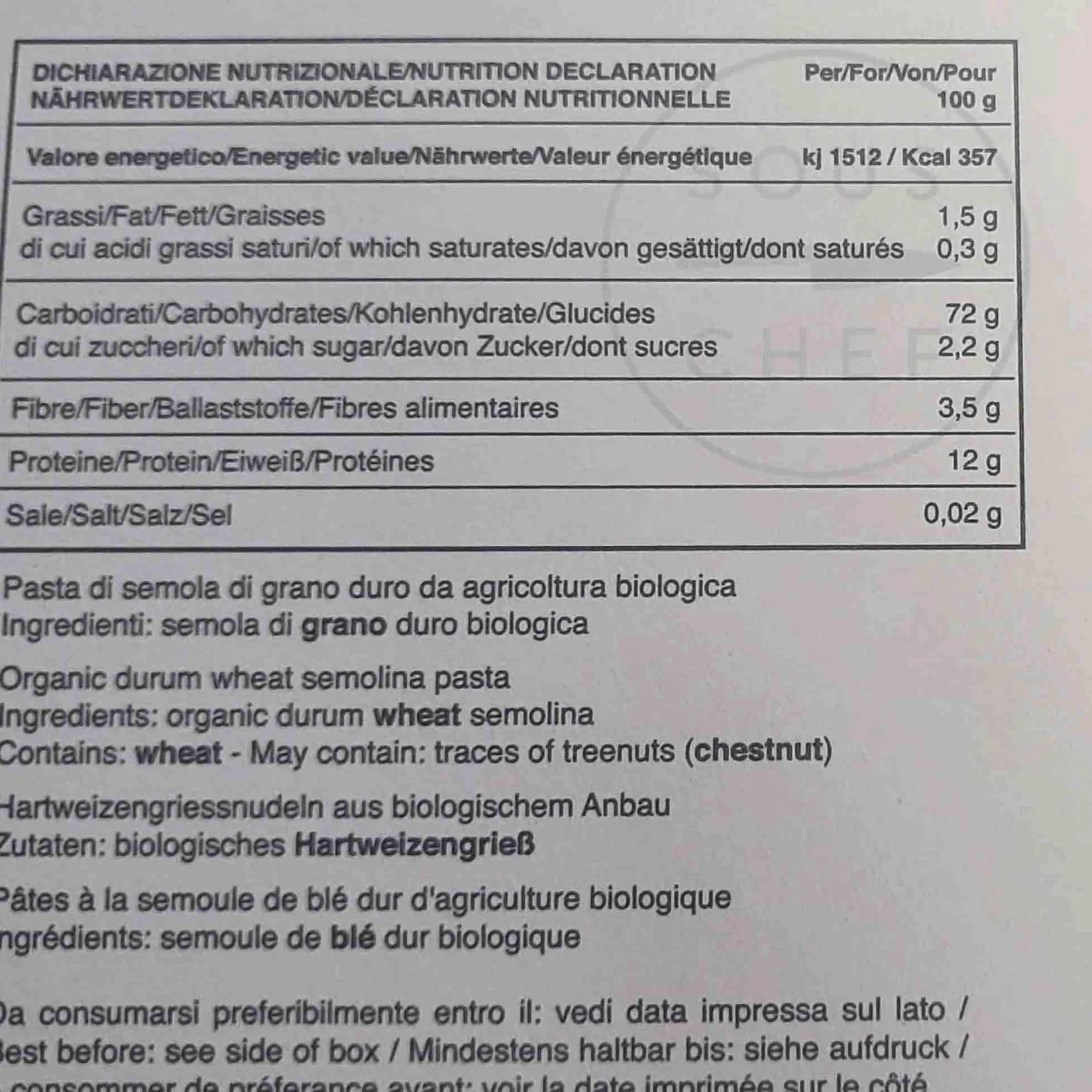 Product formulations and details may change. For the latest ingredients and allergen information always check product packaging prior to consumption. Ingredients: Organic durum wheat semolina 100%