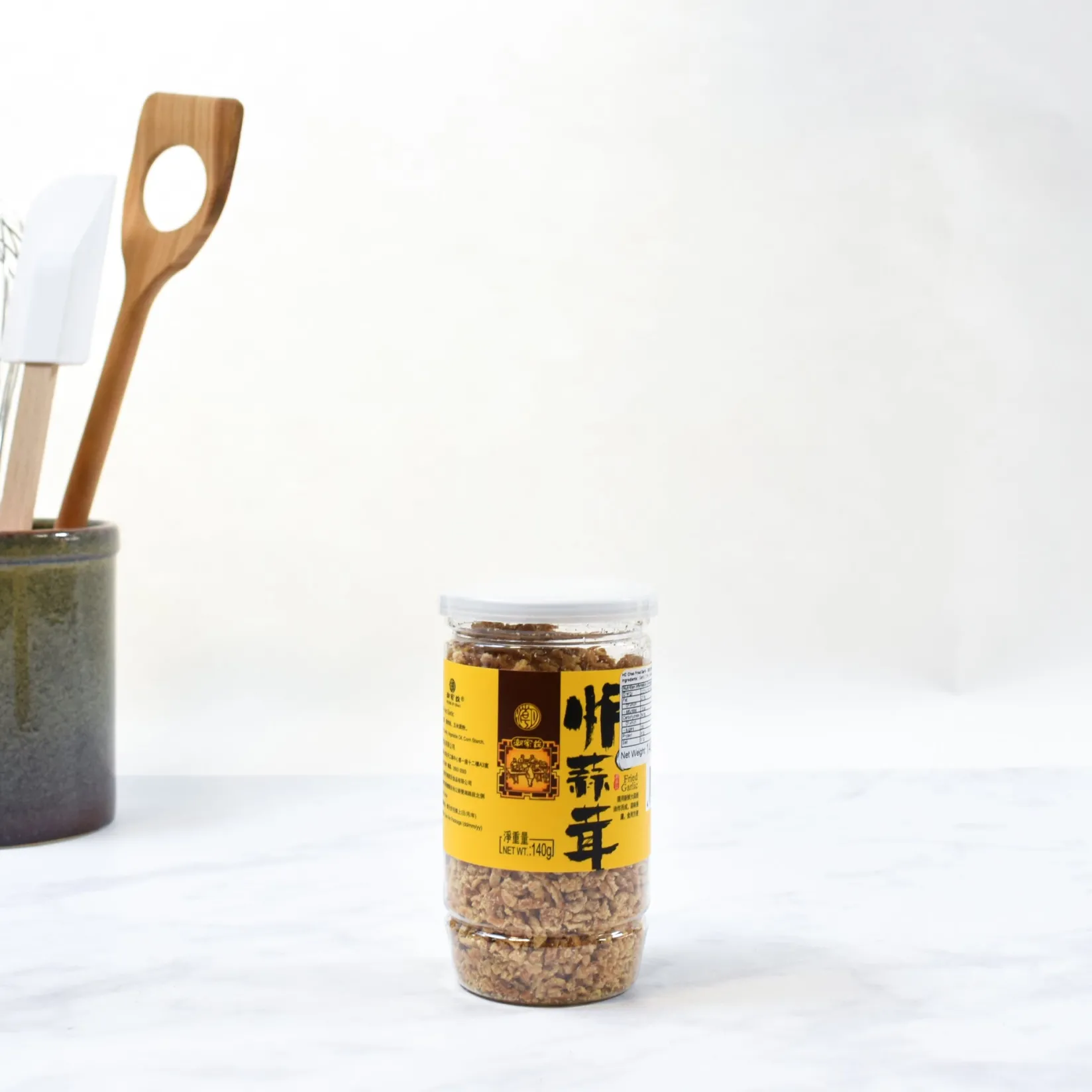 The pot of crispy fried garlic is kept air-tight with a ring-pull seal. Once opened, use the air-tight lid to keep the garlic fragments light and crispy.