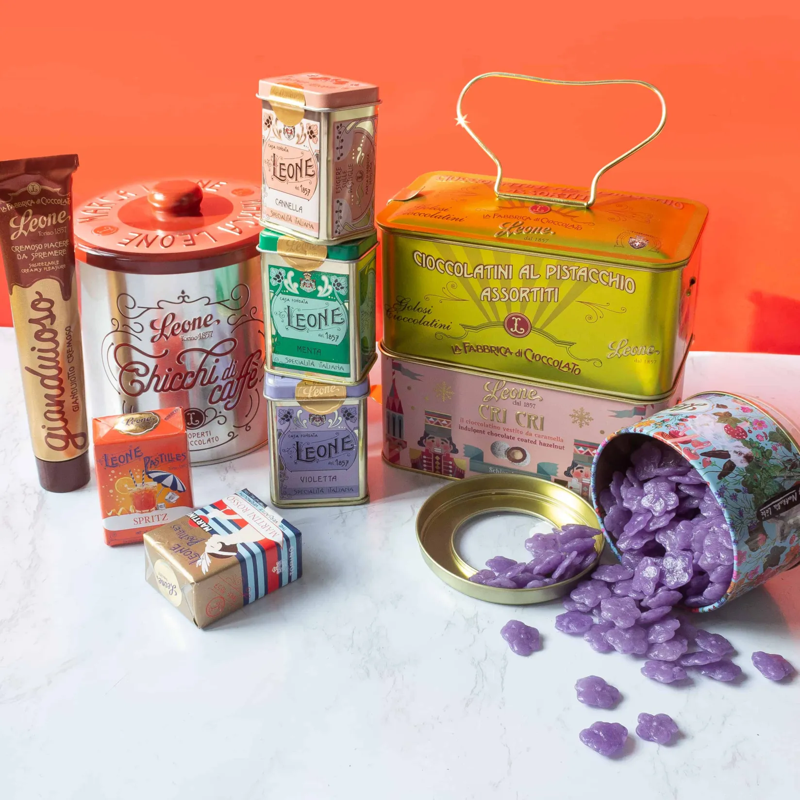 Leone has been making some of the finest sweets in Italy since 1857. Luigi Leone opened his first shop in Alba, Piedmont to sell digestive pastilles. His mint, cinnamon and clove-flavoured delights proved so popular that before long he found himself opening a shop in Turin. His customers even included the Royal House of Savoy. Today Leone continues to make sweets using the finest Italian ingredients. They stay rooted in Luigi’s original goal: ‘to bring small moments of happiness to those who savour their products’.
