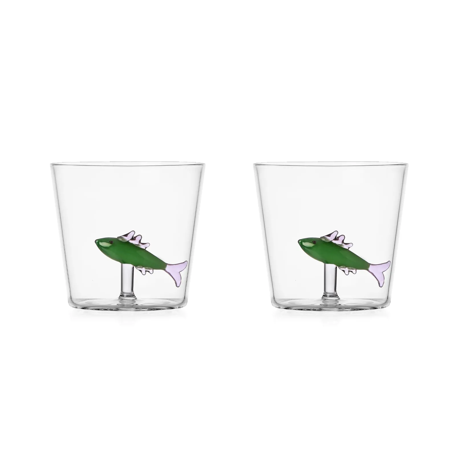 The tumblers are handmade from durable borosilicate glass. The green sardine adds a touch of fun to delight your dinner guests. Use them to serve water, cocktails or milkshakes.