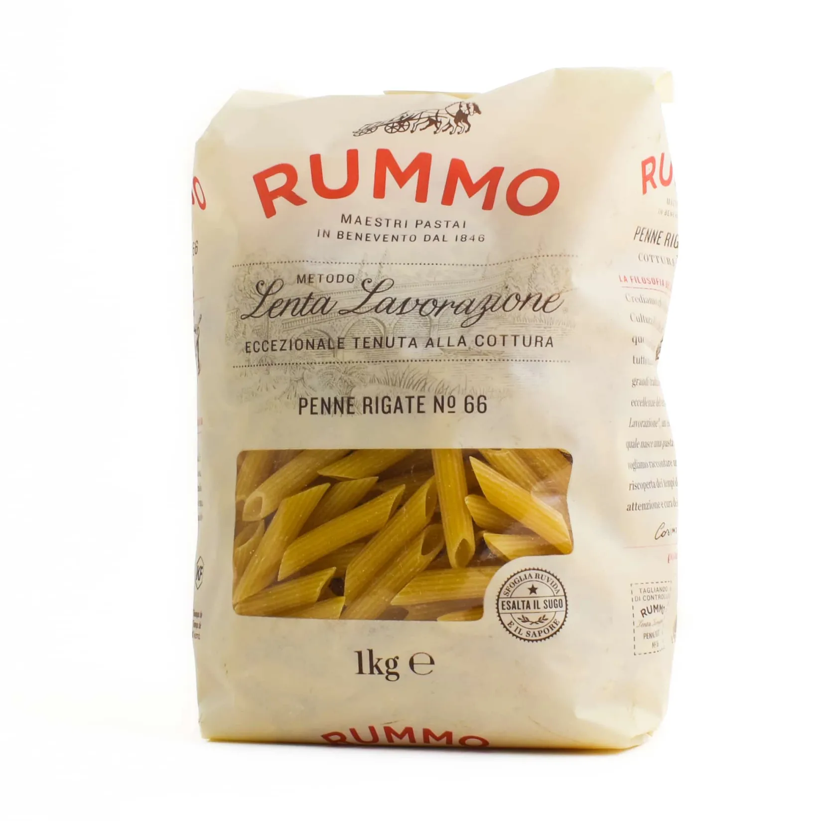 Rummo penne rigate no. 66 are ridged pasta tubes that are perfectly adapted to sauces like pesto and arrabbiata. The penne rigate cooks in 11 minutes.