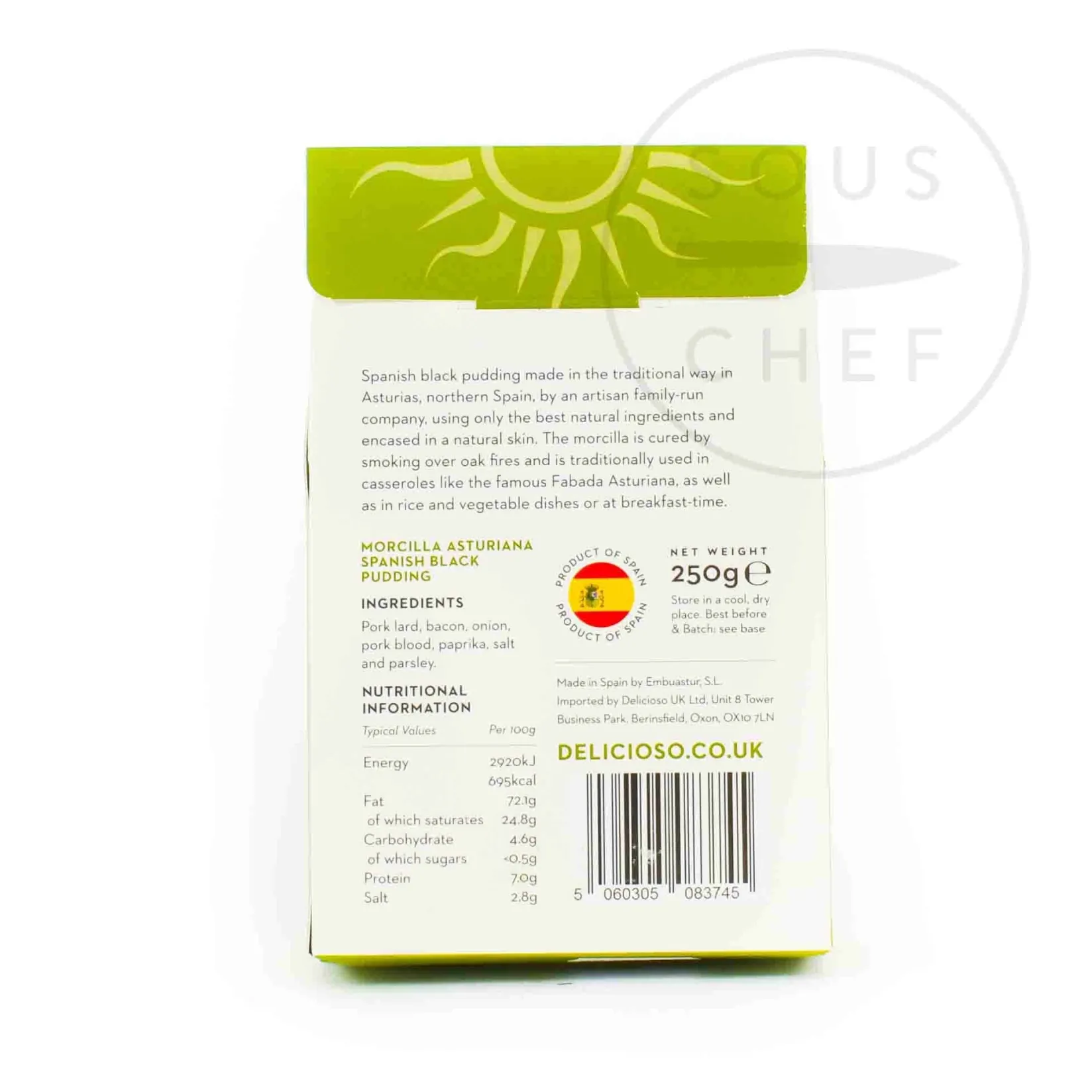 Morcilla is a Spanish blood sausage much like a black pudding, and has a crumbly texture when cooked. This morcilla from Asturias is oak-smoked for depth of flavour and has a good amount of earthy spice from the paprika. Fry slices of the smoked morcilla with olive oil and enjoy in tapas dishes or as a smoky accompaniment to poached eggs and asparagus for brunch. Also add smoked Asturian morcilla to vegetable stews, such as the region’s famous dish of Fabada Asturiana. The skin can be tough to eat, so we recommend removing it before cooking.
