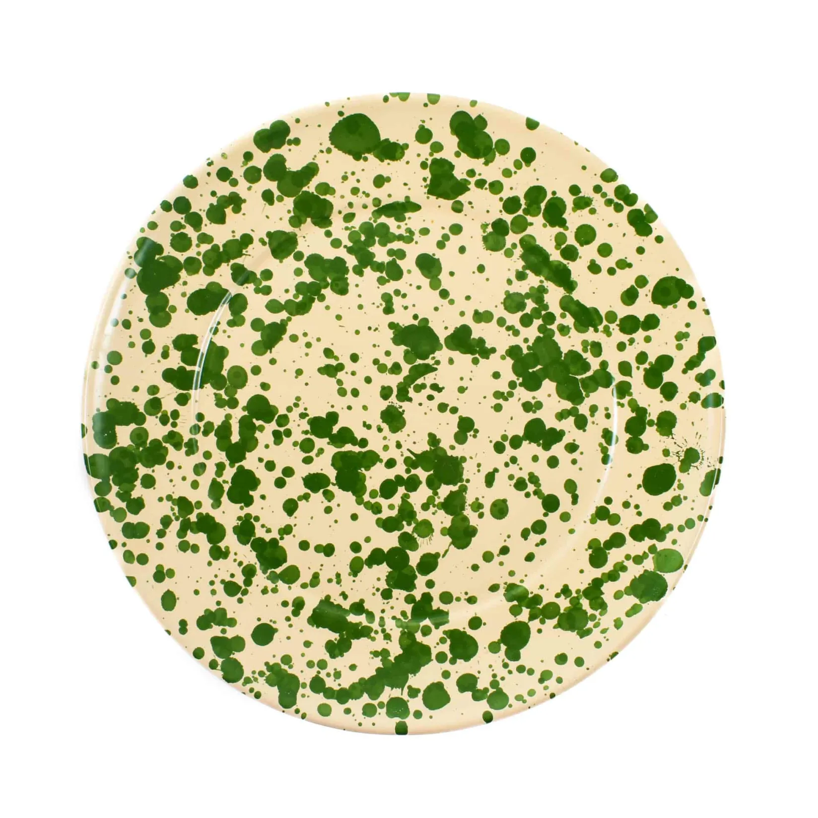 Made in Italy, this modern plate has a rich green splatter design which pops against the off-white background.