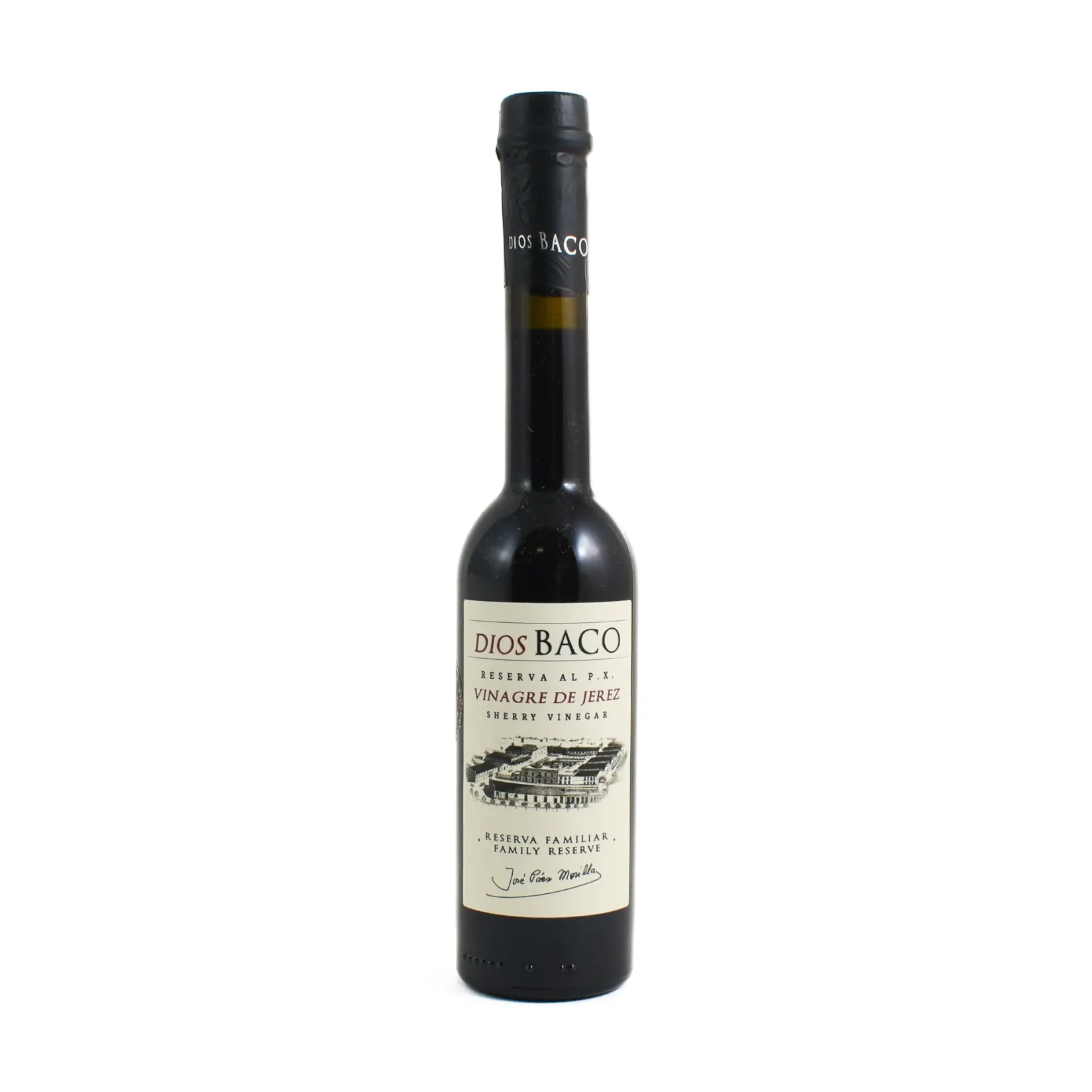 Dios Baco sherry vinegar with Pedro Ximenez is a sharp sherry vinegar that is balanced with the addition of Pedro Ximenez – an intensely dark and sweet Spanish sherry. The Dios Baco sherry vinegar is aged for around 12 years with the Pedro Ximenez adding richness to the vinegar during this process. Use the Dios Baco sherry vinegar with Pedro Ximenez in a similar way to balsamic vinegar – in salad dressings, as a glaze or over figs and cured ham.