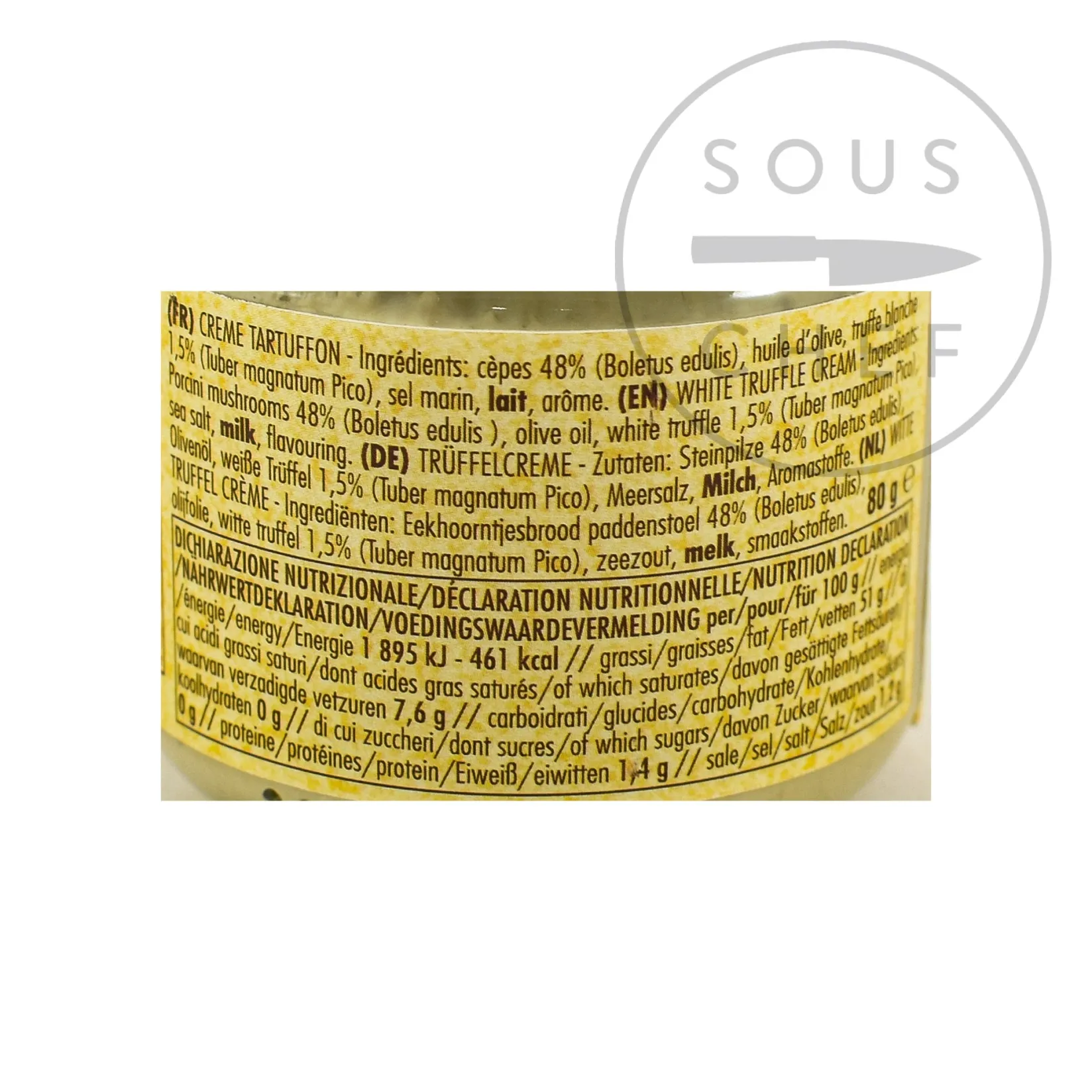 Product formulations and details may change. For the latest ingredients and allergen information always check product packaging prior to consumption. Ingredients: Porcini mushrooms 47% (Boletus edulis), olive oil, white truffle 1.5% (Tuber magnatum Pico), sea salt, milk, flavouring,