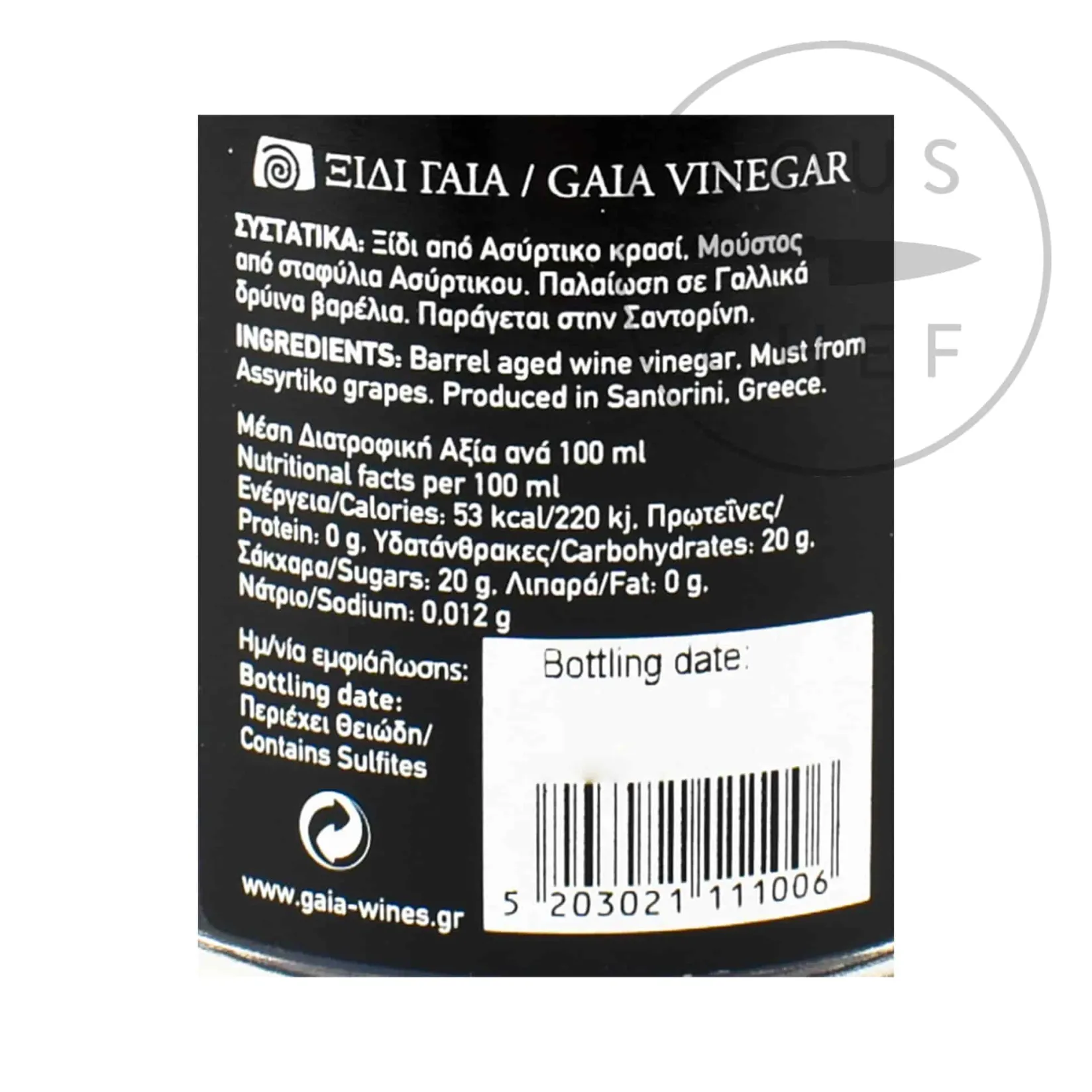 Product formulations and details may change. For the latest ingredients and allergen information always check product packaging prior to consumption. Ingredients: Vinegar from Assyrtiko grapes.