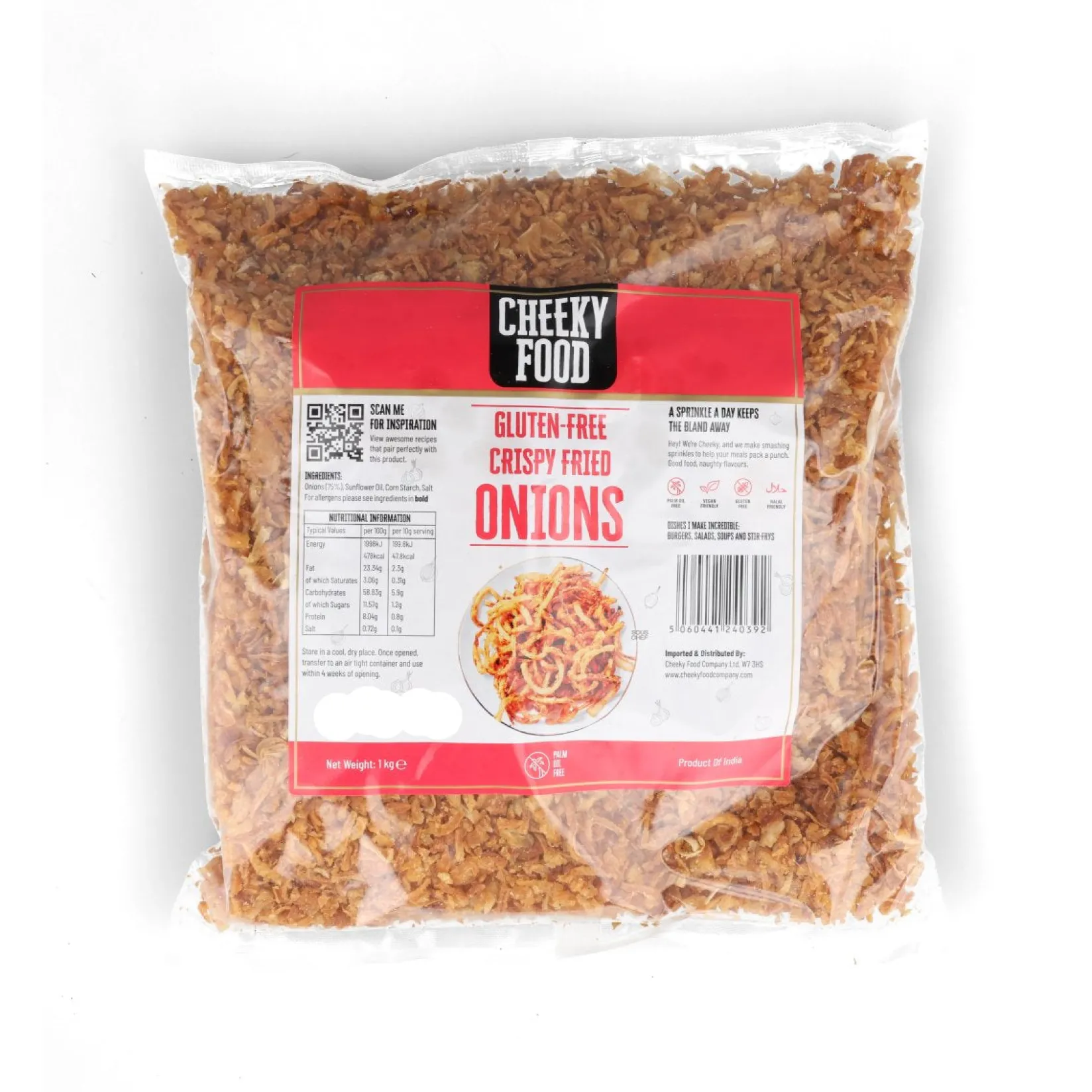 The onions are finely sliced and fried until crisp and golden. You can enjoy the umami-rich flavour of fried onions with no peeling or chopping required. They’re a great way to add crunch to salads, noodles and macaroni cheese.