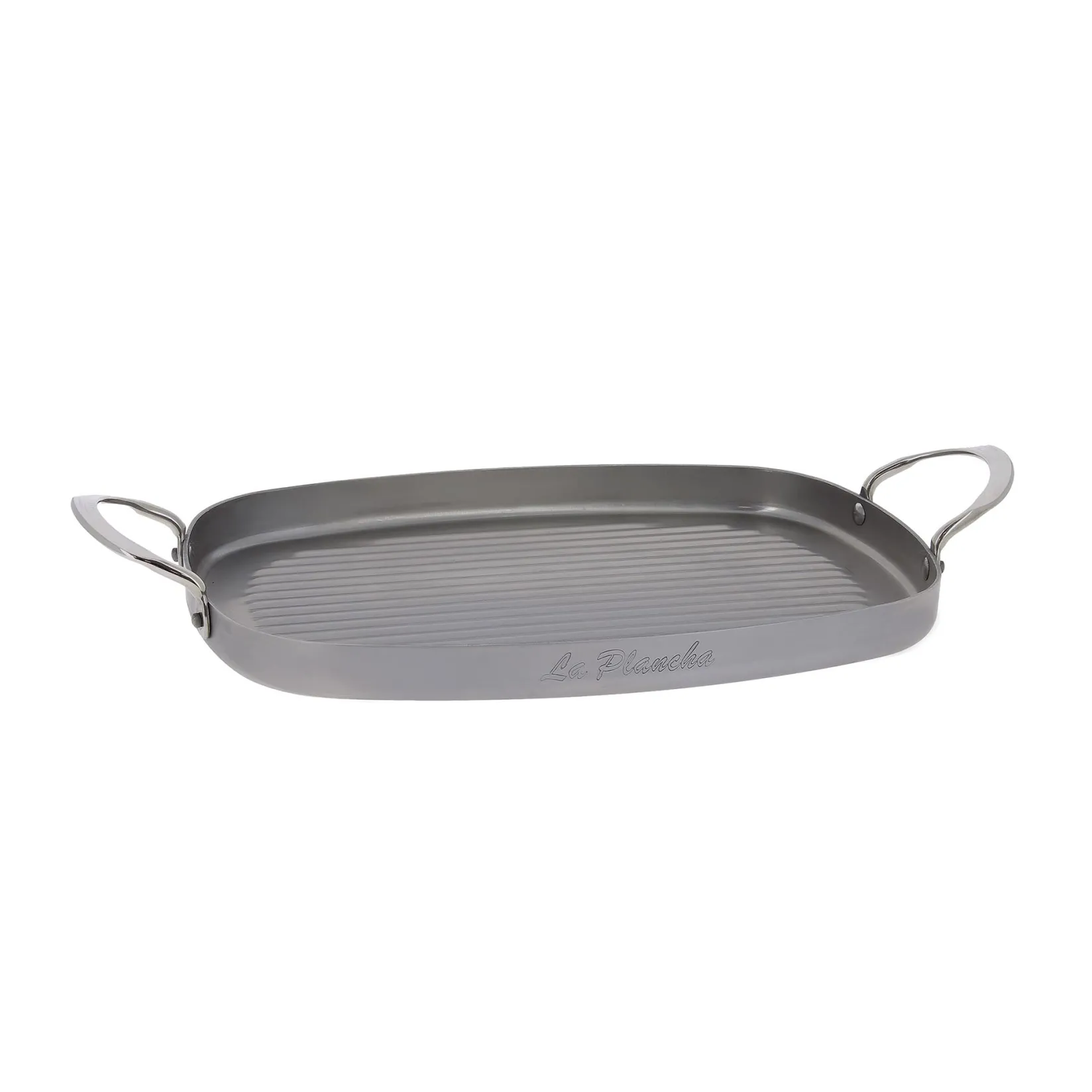The De Buyer Mineral B ‘Plancha’ grill pan is ideal for cooking al fresco. The large, oval-shaped griddle pan is great for cooking scallops, steaks, prawns and more over hot coals.