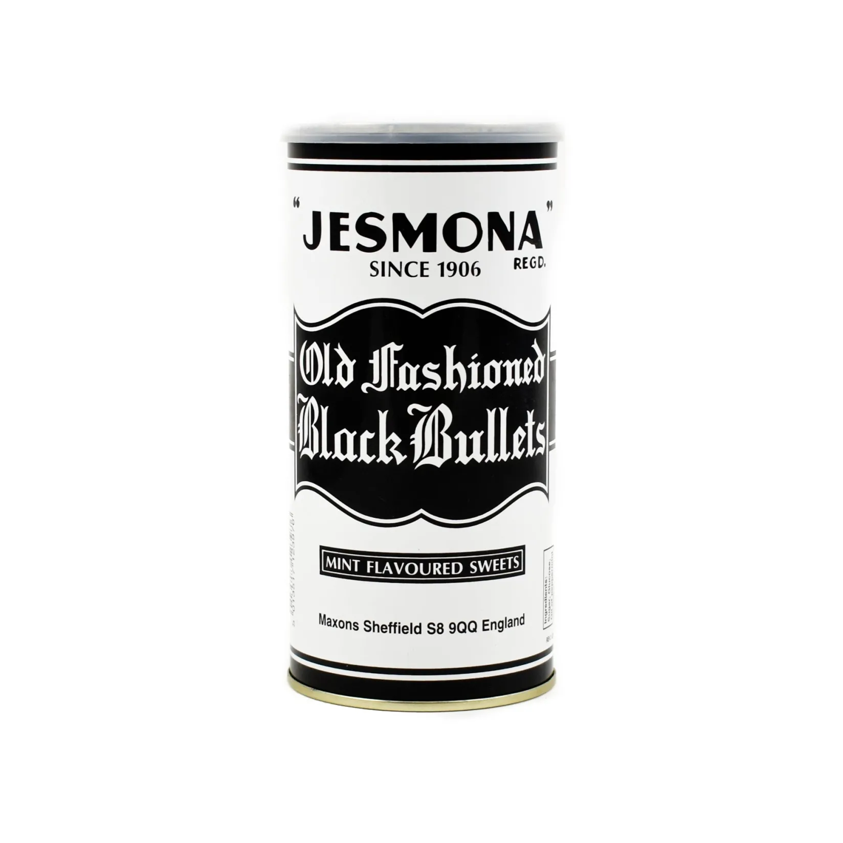 Jesmona black bullets are exclusively made by Maxons of Sheffield, though the sweets have their roots in Darlington. ‘Bullet’ is a North East dialect word for ‘boiled sweets’. It perhaps derives from the use of musket ball moulds to make the first round boiled sweets. The design of the distinctive black-and-white tins has barely changed over the last 100 years, making them instantly recognisable to people of every generation.