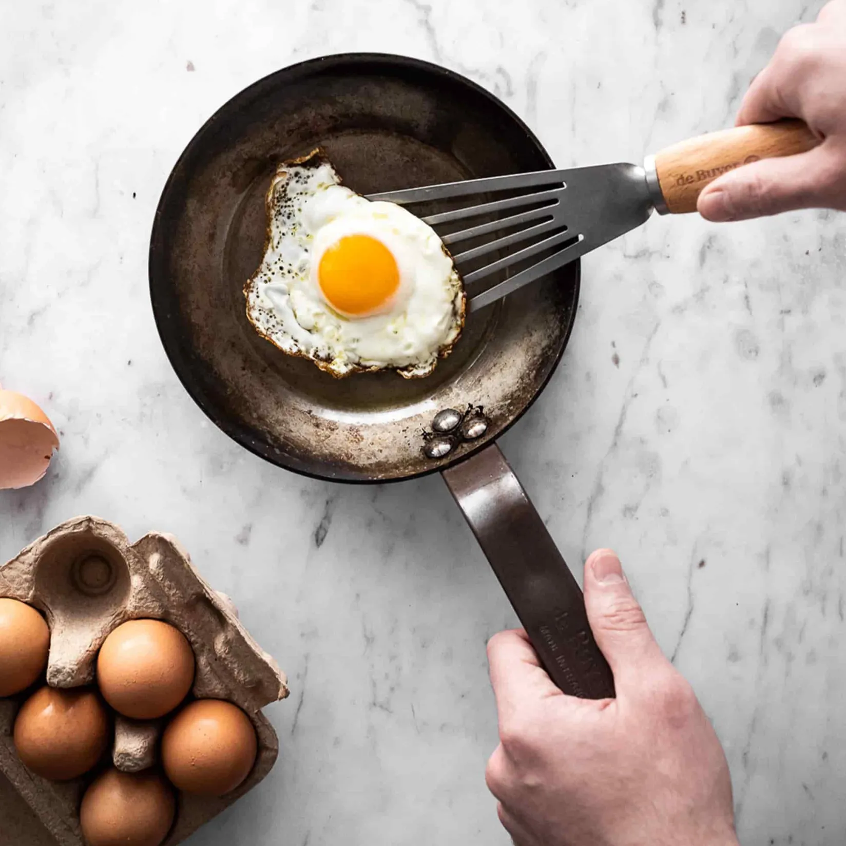 The De Buyer Carbone Plus carbon steel frying pan with iron handle is a hardwearing and popular choice in professional kitchens. Use the heavy iron pan for high-temperature searing and grilling of meat, fish, eggs and vegetables.