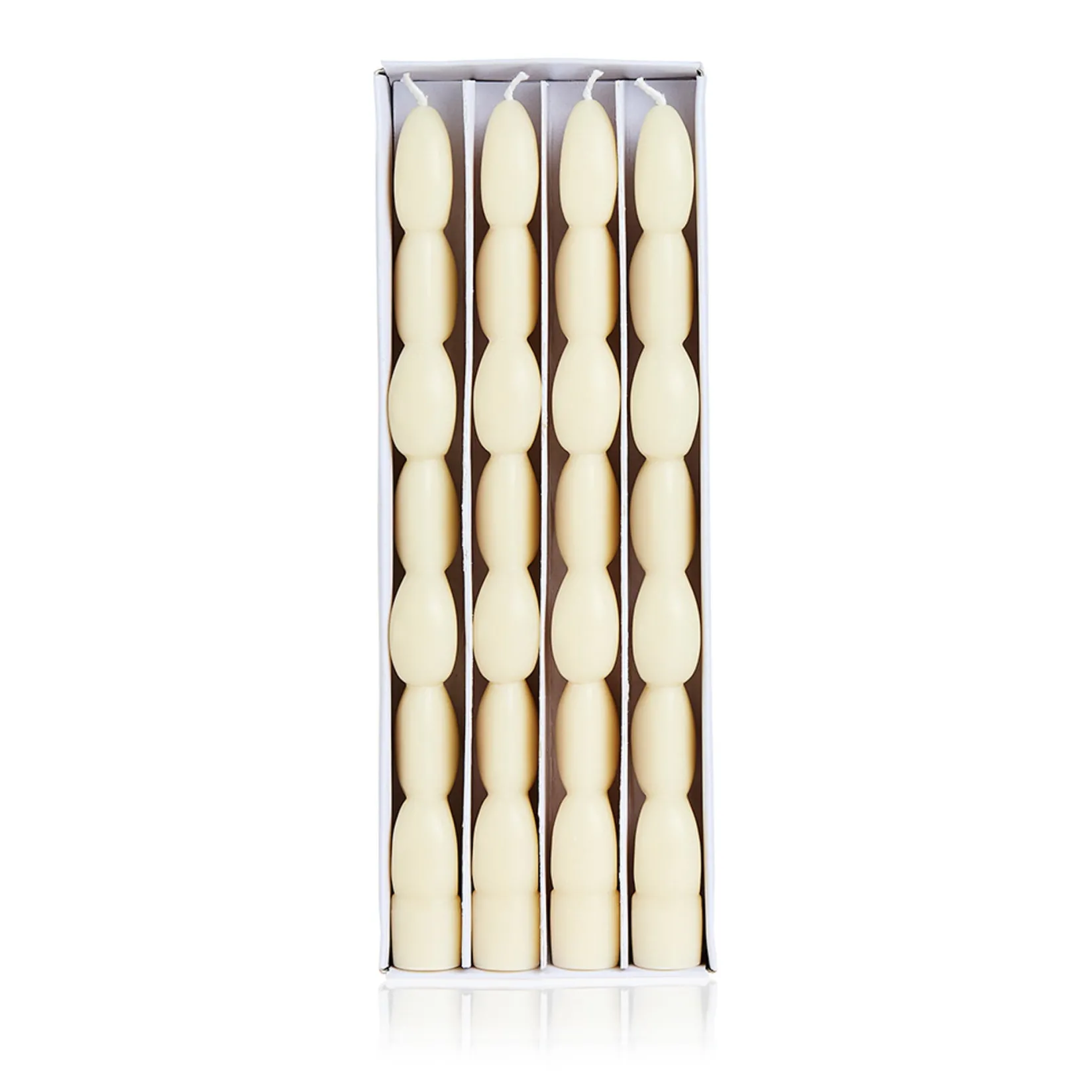 The candles are made from ivory-coloured unscented wax. Light the wick to cast a golden glow across your table. They’re perfect for dinner parties and family gatherings.