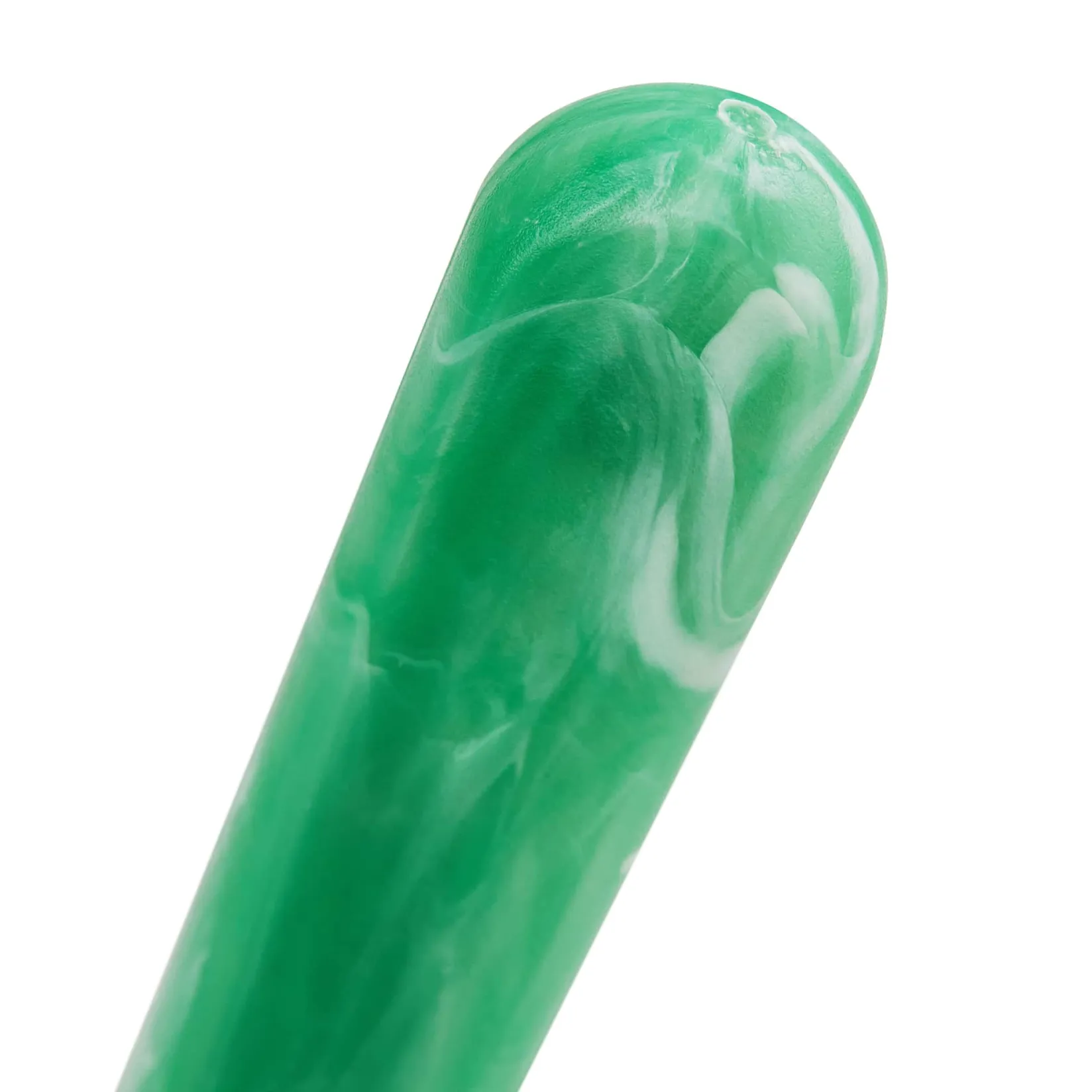 The handle is made from waste plastic from Maldon sea salt containers. The octagonal shape and mint green colour make it a beautiful addition to your table. No two handles are the same, so each knife has its own unique pattern.
