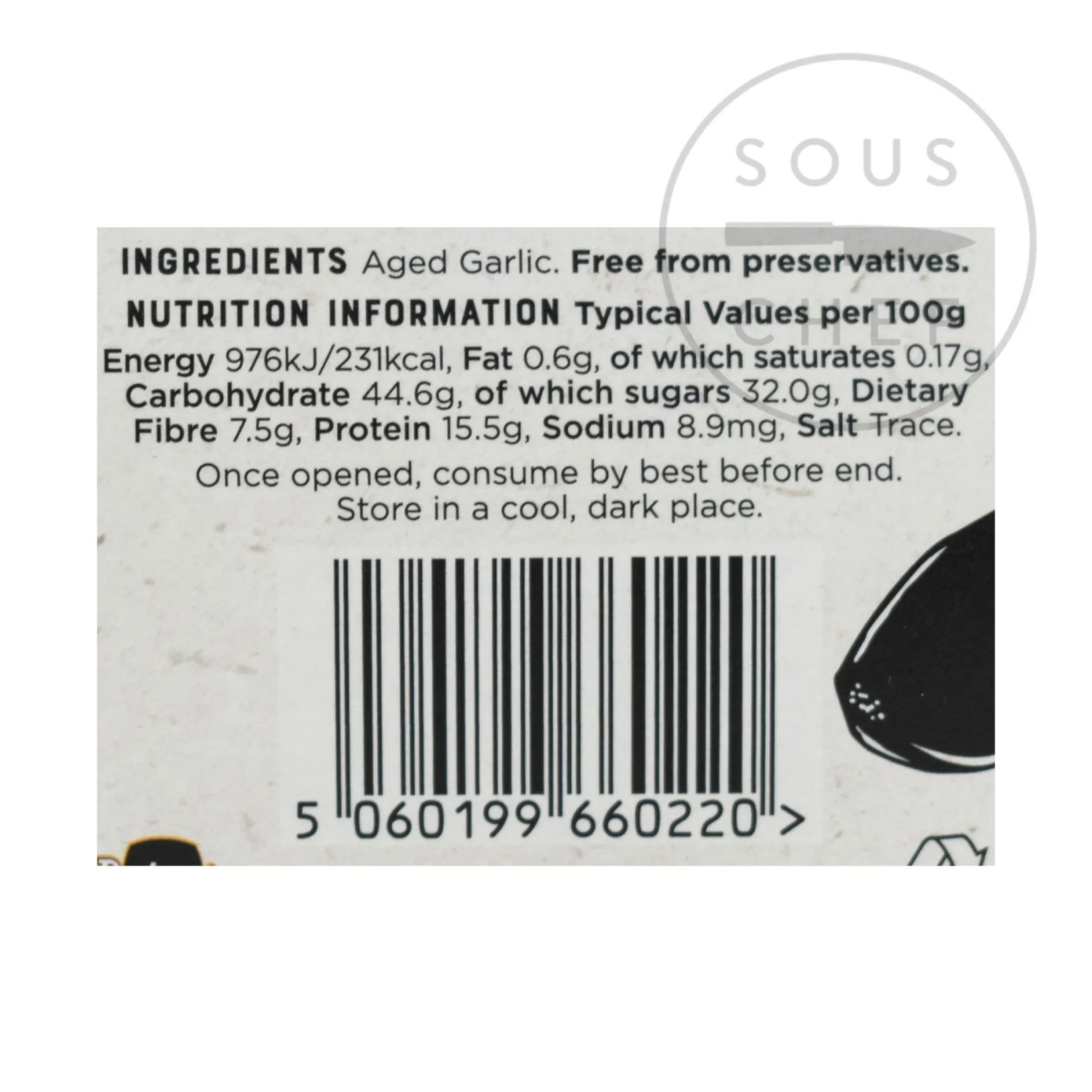 Black garlic is an entirely natural product which derives its flavour entirely from the ageing process. It also contains twice the antioxidants of white garlic.