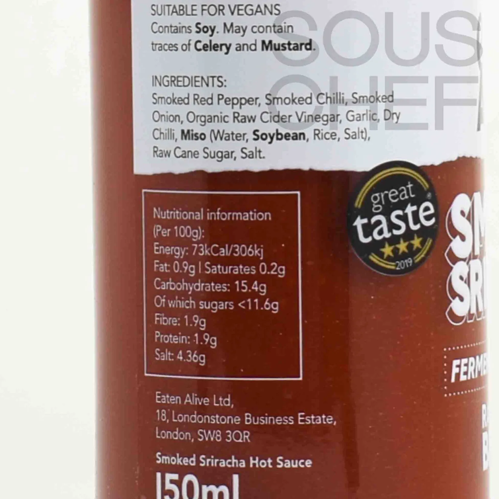 Product formulations and details may change. For the latest ingredients and allergen information always check product packaging prior to consumption. Ingredients: Smoked red pepper, smoked chilli, smoked onion, raw cider vinegar, dry chilli, chilli miso (soybeans, chilli powder, rice, koji cultures), raw cane sugar*, salt (*organic ingredients)