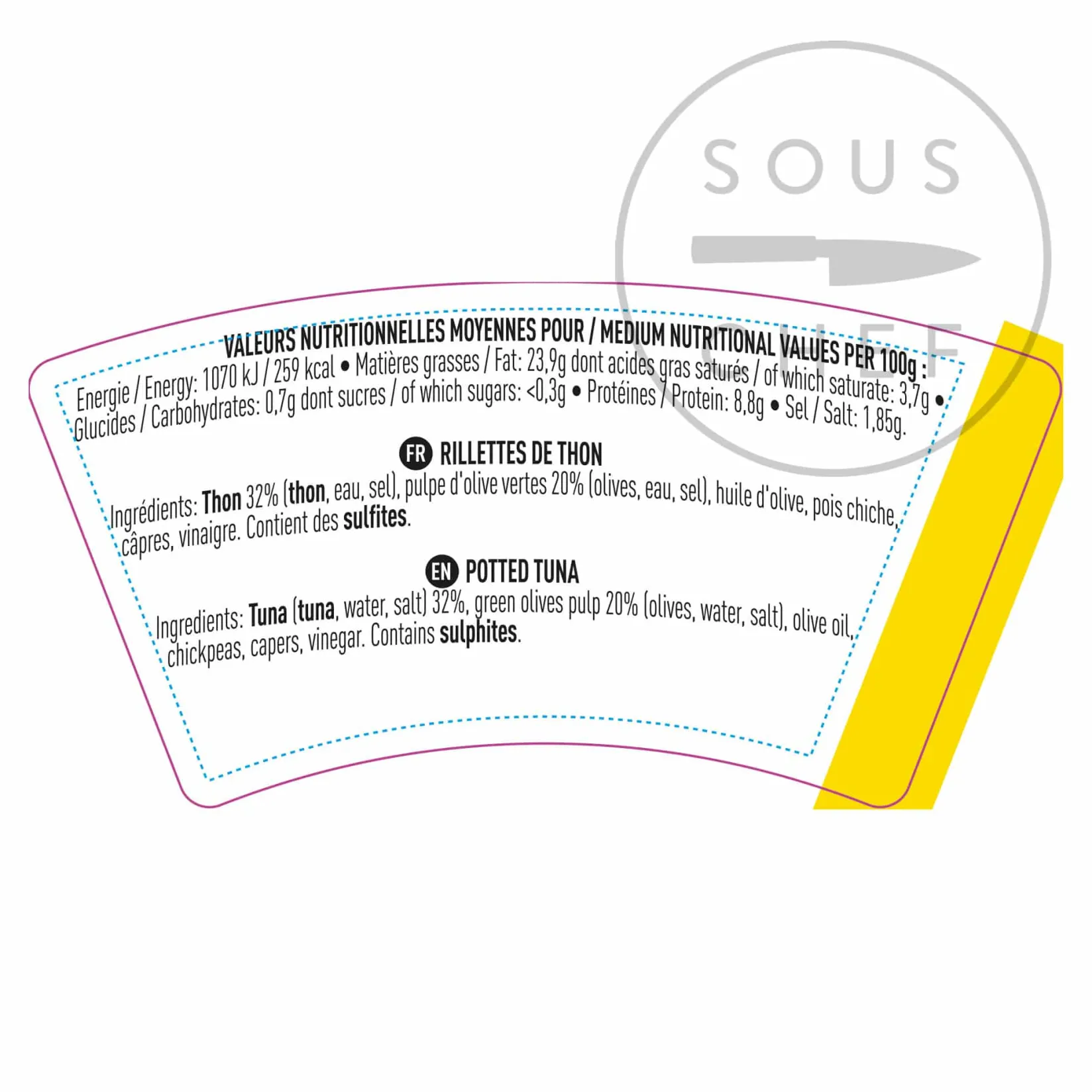 Product formulations and details may change. For the latest ingredients and allergen information always check product packaging prior to consumption. Ingredients: Tuna (tuna, water, salt) 32%, green olive flesh 20% (olives, water, salt), olive oil, chickpea, capers, vinegar. Contains sulphites.