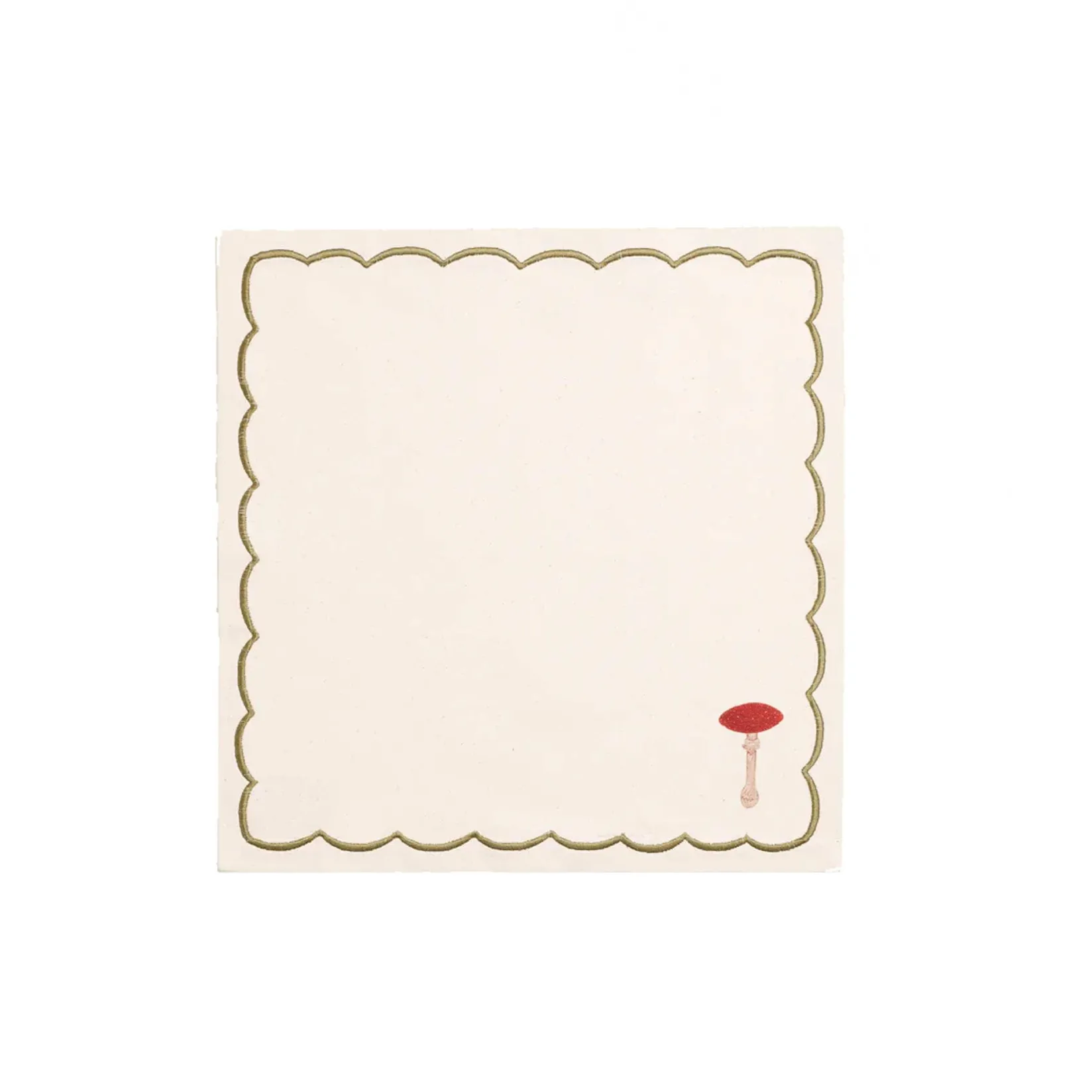 This set of four mushroom design linen napkins will add a touch of autumnal elegance to your table. Printed on high quality linen, each napkin features a different mushroom design and a wavy embroidered border. Each mushroom has its own unique shape and colour, ranging from earthy browns to pale pinks and robust reds. The designs have a delicate, playful appeal – perfect for long, leisurely lunches with friends.