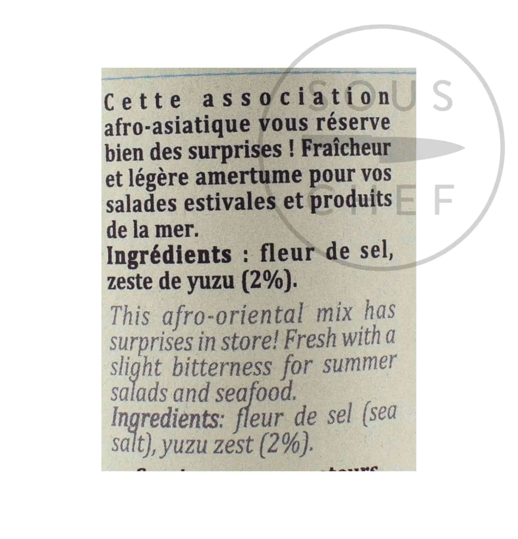 Product formulations and details may change. For the latest ingredients and allergen information always check product packaging prior to consumption. Ingredients: Fleur de sel, yuzu zest