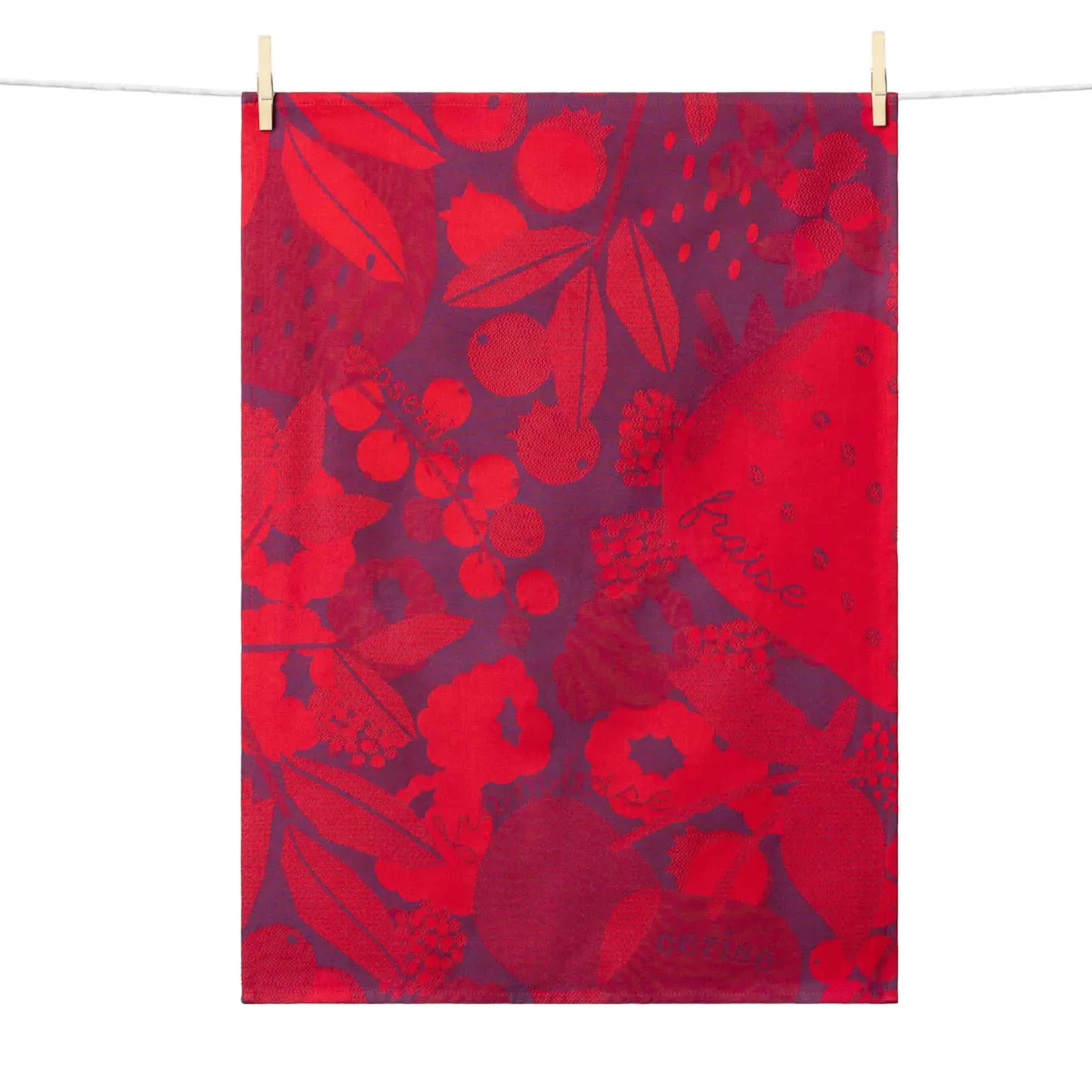 This Jacquard tea towel is covered in red fruits. Made from 100% cotton, it’s a great way to add colour to your kitchen. Use it to dry dishes and carry hot plates to the table.