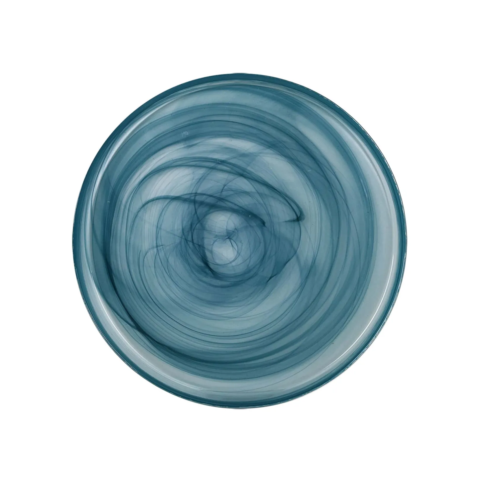 This teal glass dinner plate is a striking addition to your table. The swirling marble effect is reminiscent of ripples in water.