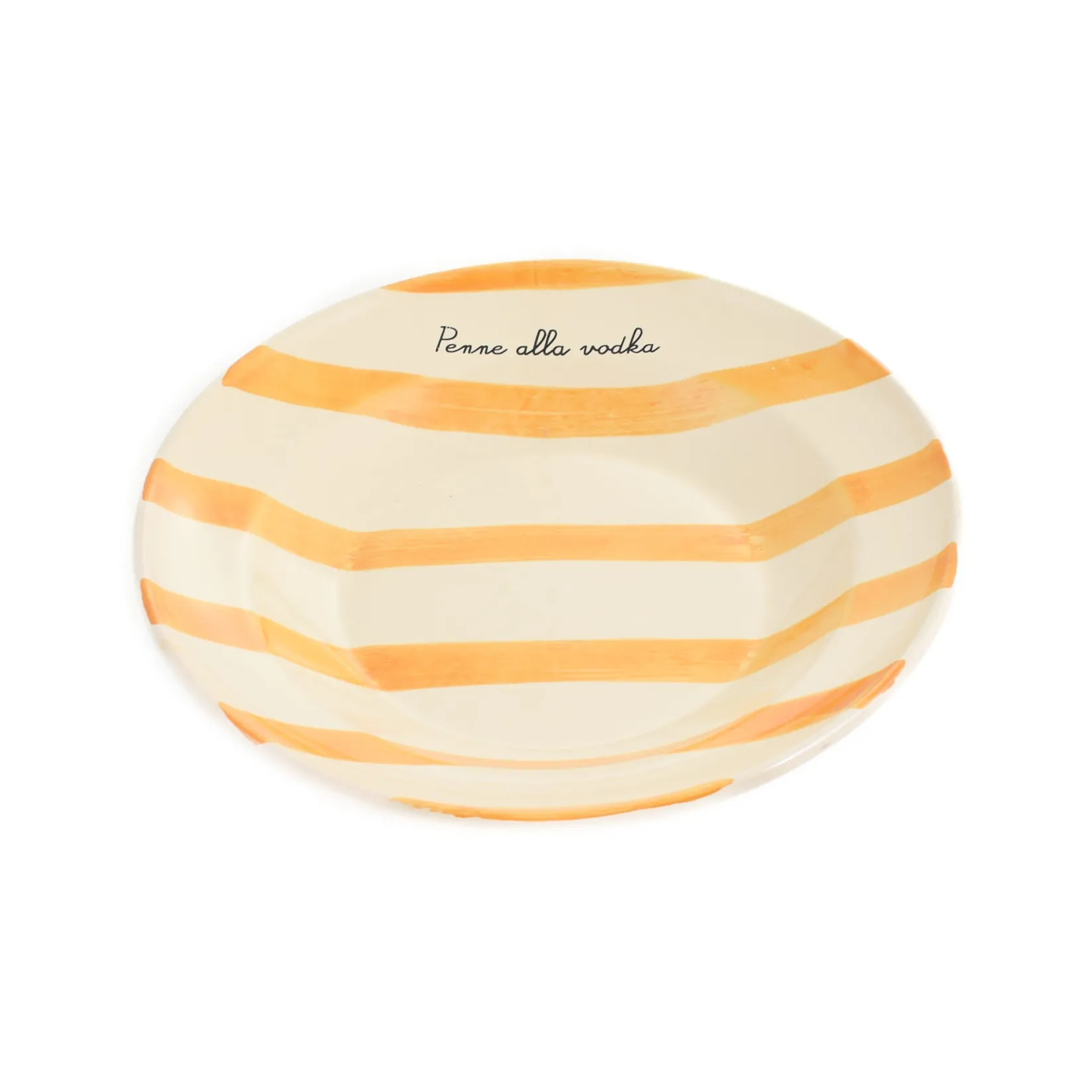Serve penne alla vodka in style with this yellow stripe pasta bowl. It adds a dash of Mediterranean chic to your table.