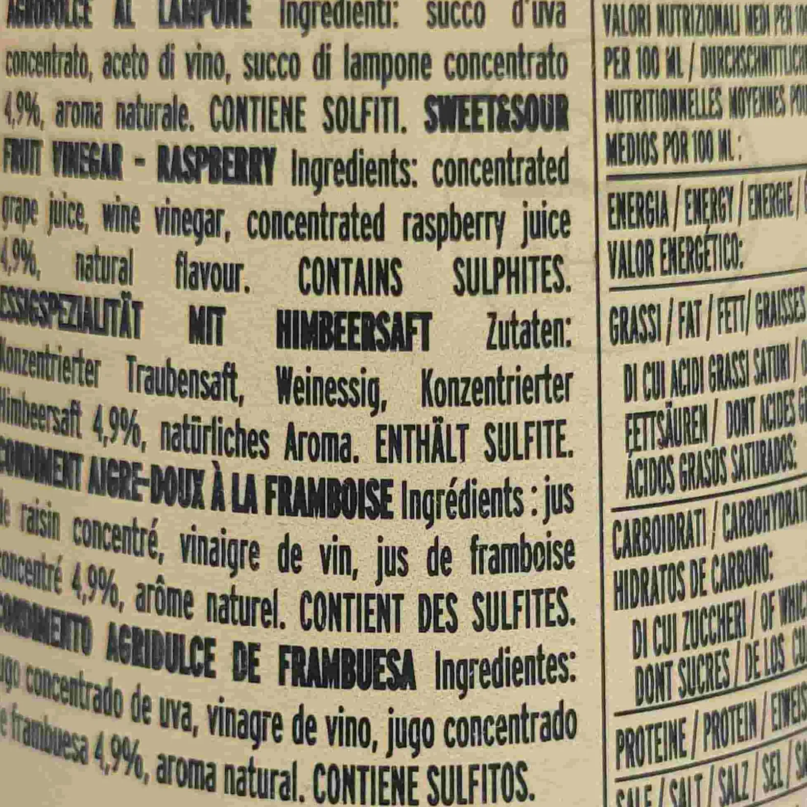 Product formulations and details may change. For the latest ingredients and allergen information always check product packaging prior to consumption. Ingredients: Concentrated grape juice, wine vinegar, concentrated raspberry juice 4.9%, natural flavour.