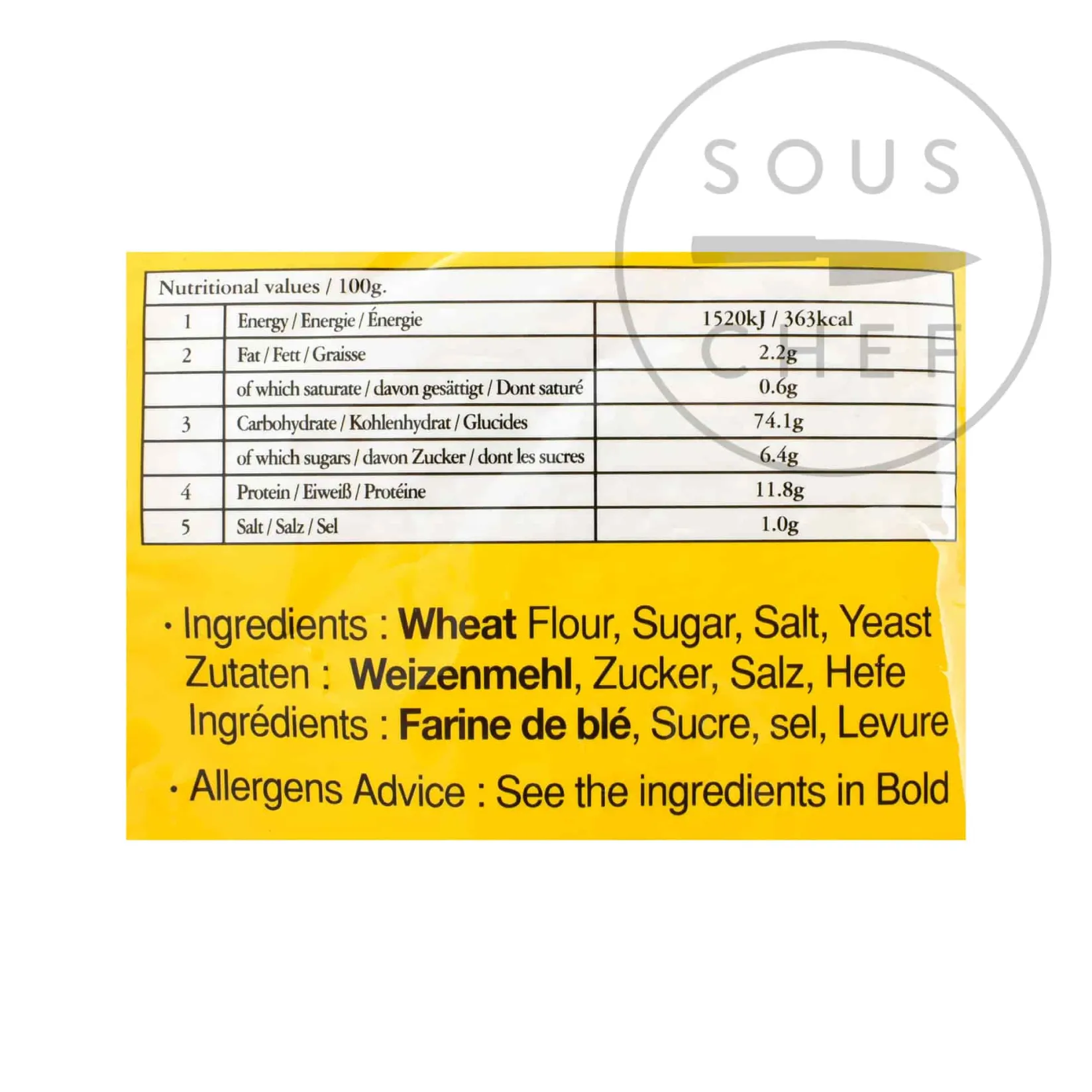 Product formulations and details may change. For the latest ingredients and allergen information always check product packaging prior to consumption. Ingredients: Wheat flour, sugar, salt, yeast