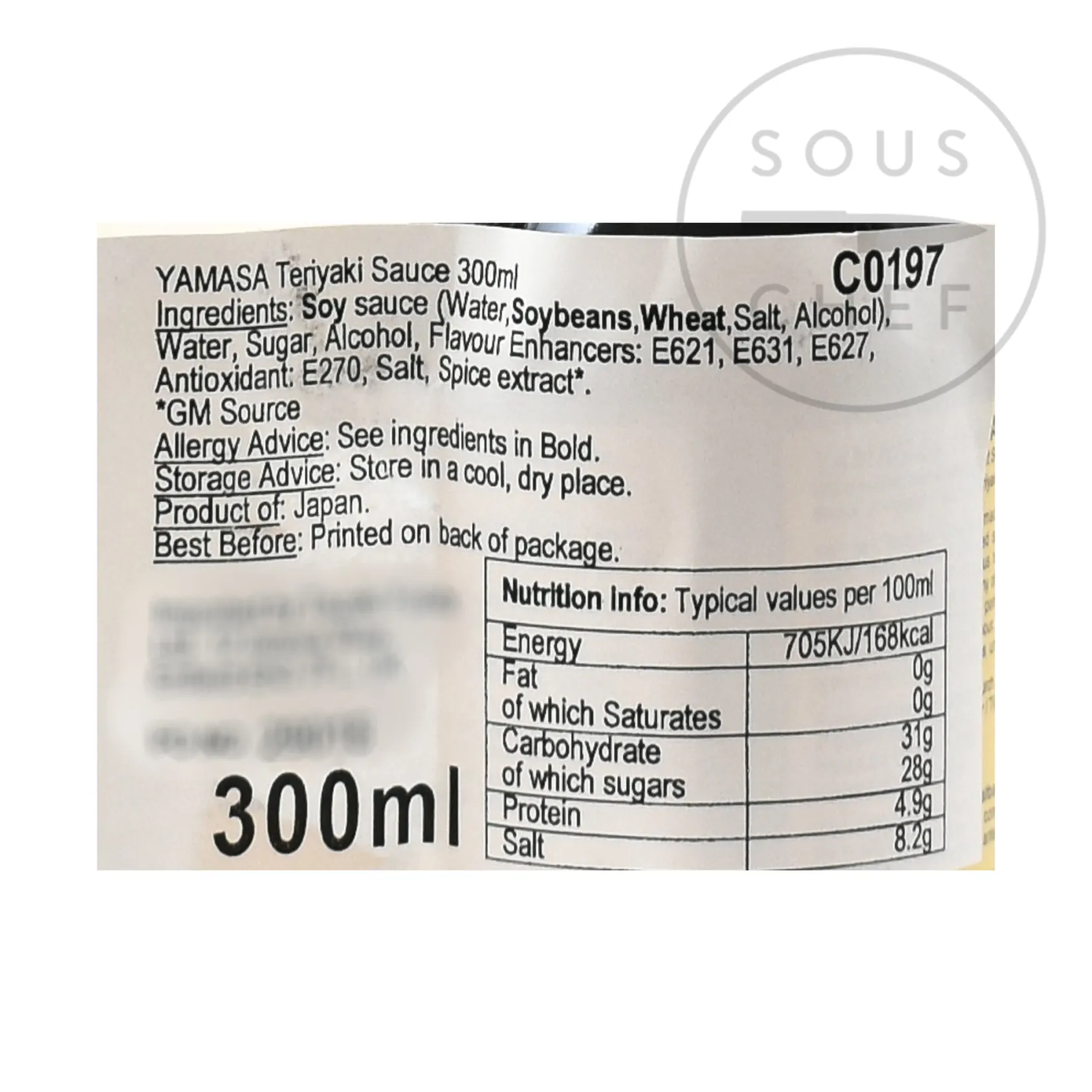Yamasa teriyaki sauce is made from naturally brewed soy sauce blended with sugar and carefully selected spices. Its flavourful aroma allows easy preparation of delicious teriyaki dishes, with chicken, pork, beef, fish, vegetables, and almost anything else! For best results, marinade chicken, pork, and beef for at least 2 hours, and fish and vegetables for 1 hour.