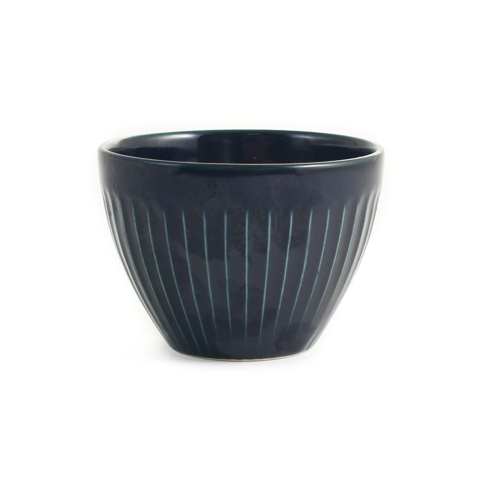 Fill the gyo black teacup with oolong, Earl Grey or calming chamomile tea. Made in Japan, the lacquered cup is decorated with vibrant blue stripes. It is slim at the bottom and wide at the top so you can enjoy the full aroma of your tea.
