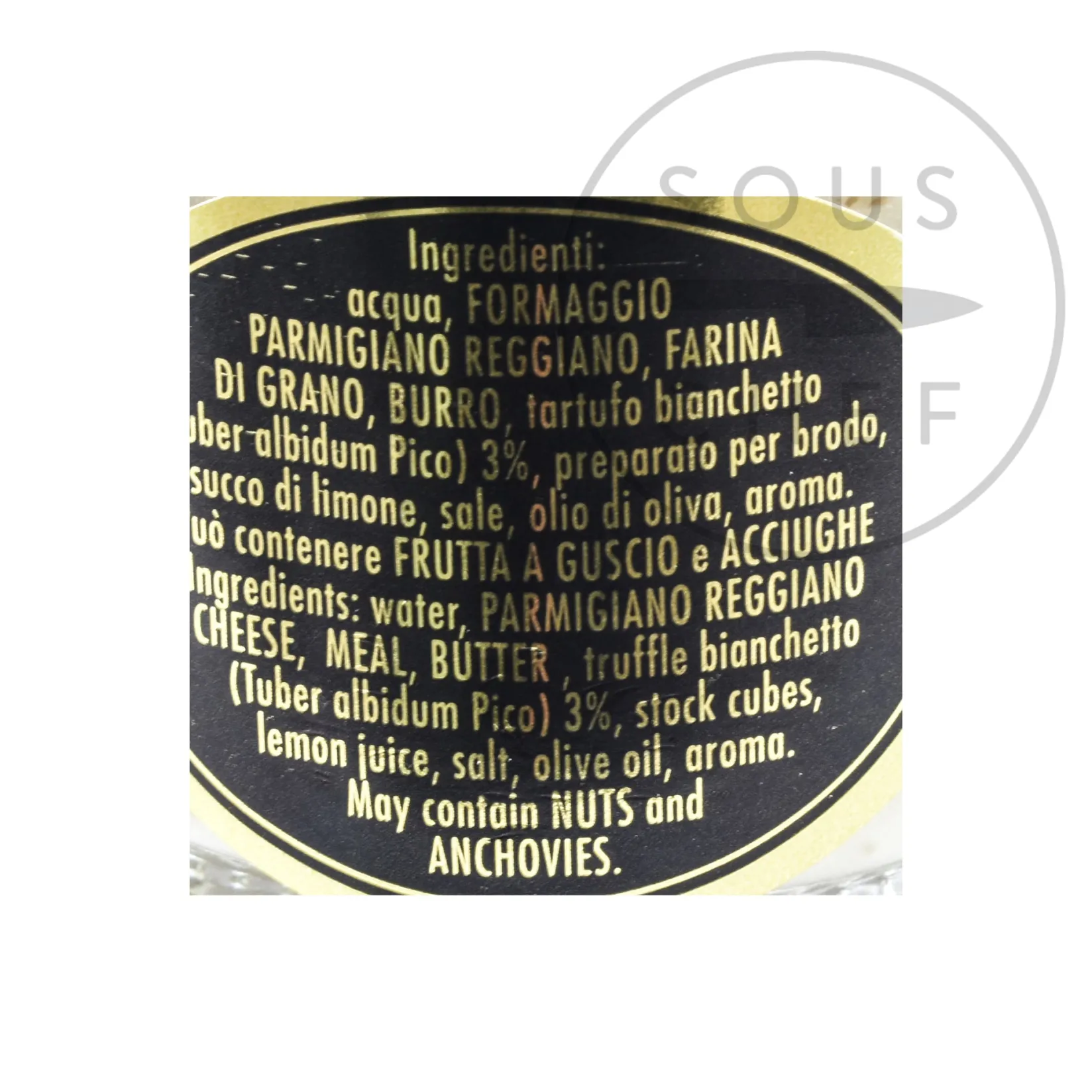 Product formulations and details may change. For the latest ingredients and allergen information always check product packaging prior to consumption. Ingredients: water, pargamino reggiano cheese (milk), meal (gluten), butter (milk), truffle bianchetto, (Tuber albidum Pico) 3%, stock cubes, lemon juice, salt, olive oil, aroma. Allergy advice: For allergens including cereals containing gluten see ingredients in bold. May contain nuts and anchovies.