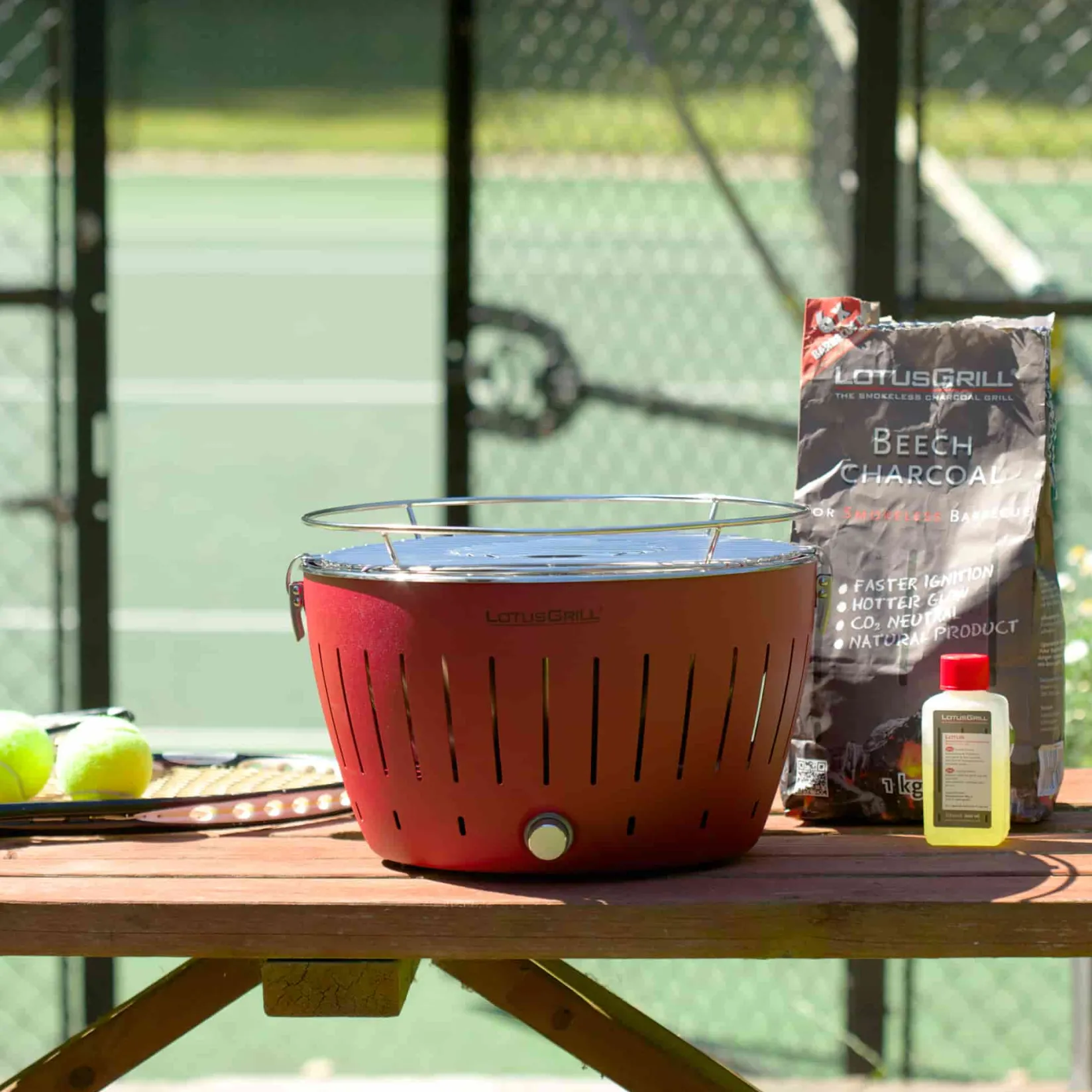 The Lotus Grill XL in red gives you the chargrilled flavours of a coal BBQ – without the smoke! The Lotus grill is a compact and portable BBQ that is ready to go in under 5 minutes, virtually smokeless! This XL-sized grill feeds up to 10 people, as this generous grill has a surface 60% larger that a standard barbecue. Ideal for a feast of sausages, burger and more, this is the perfect BBQ for entertaining family and friends.