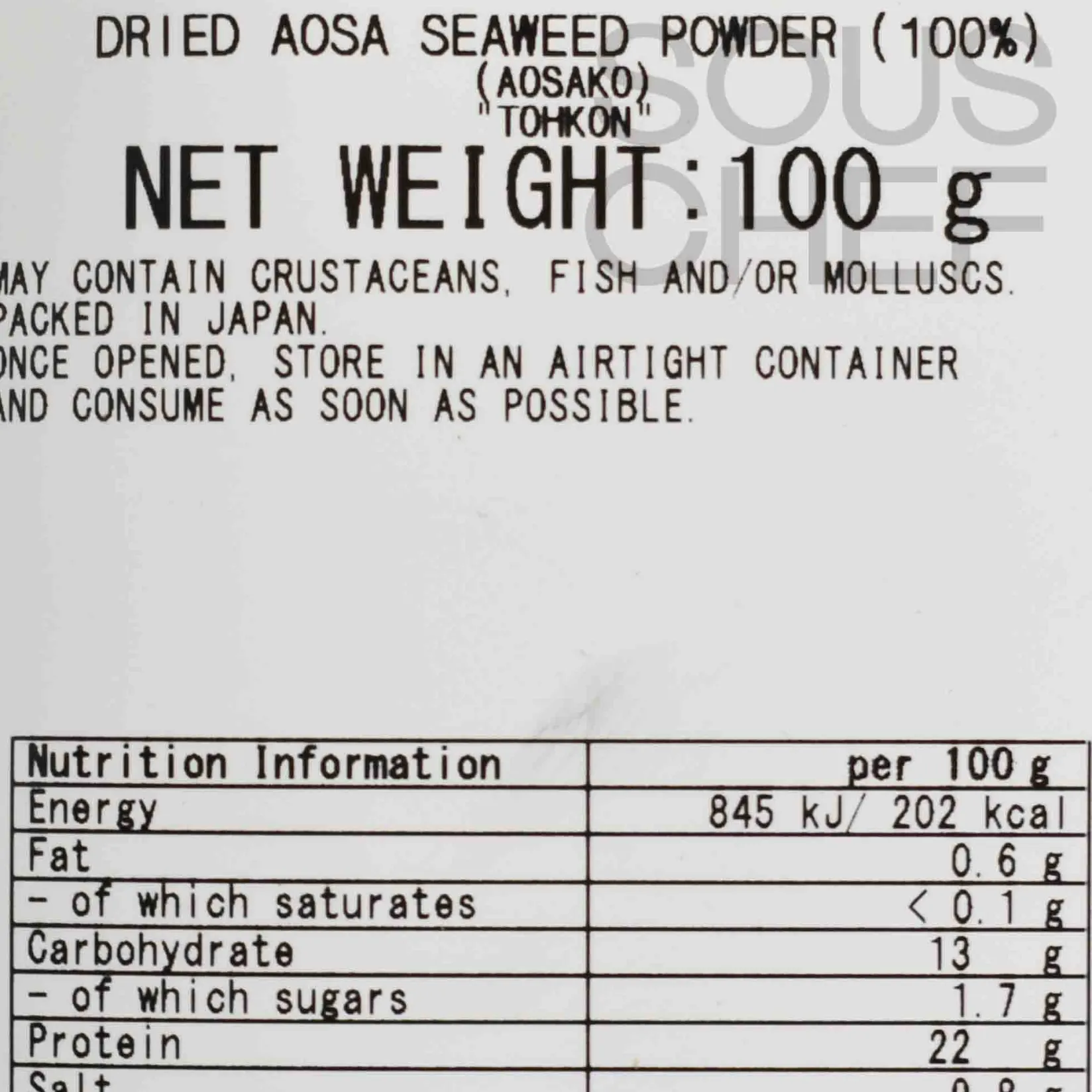 Product formulations and details may change. For the latest ingredients and allergen information always check product packaging prior to consumption. Ingredients: Dried aosa seaweed powder (100%)