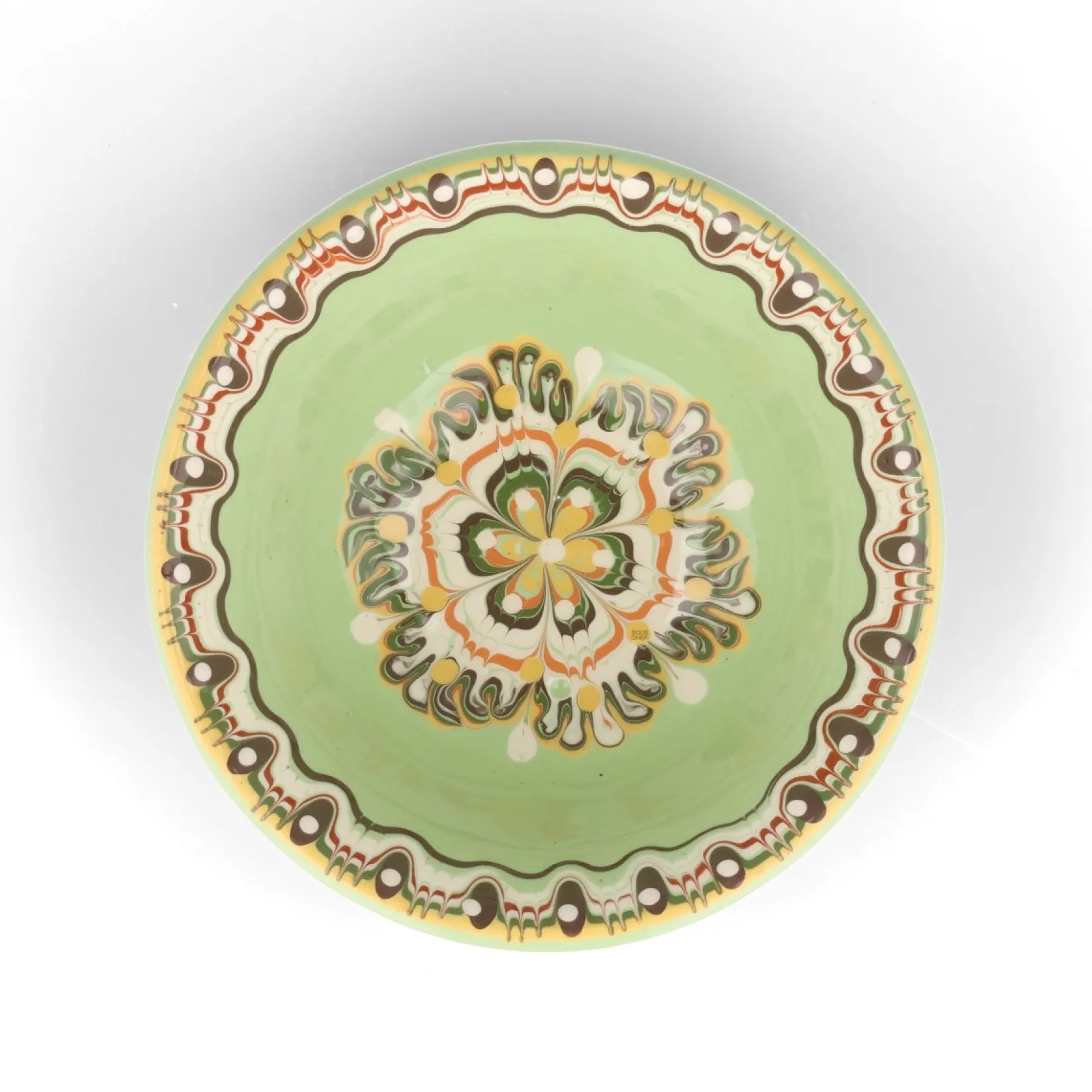 This soup bowl is part of a collection of Bulgarian pottery. It’s produced in the city of Troyan, which is famous for its ceramics. The vibrant colours and unique designs are an eye-catching alternative to traditional tableware.