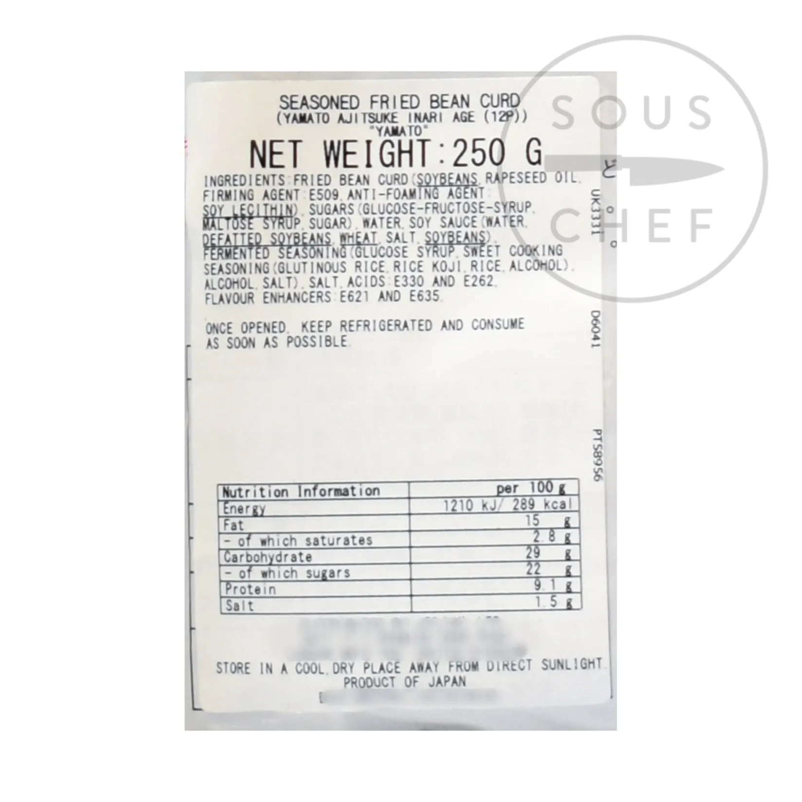 This packet contains ten sheets of pre-cooked tofu, ready to be stuffed and turned into the famous vegetarian-friendly, inari sushi. The strips of bean curd are dressed in soy sauce and mirin, giving them a slightly sweet, delicate flavour before they are deep-fried.