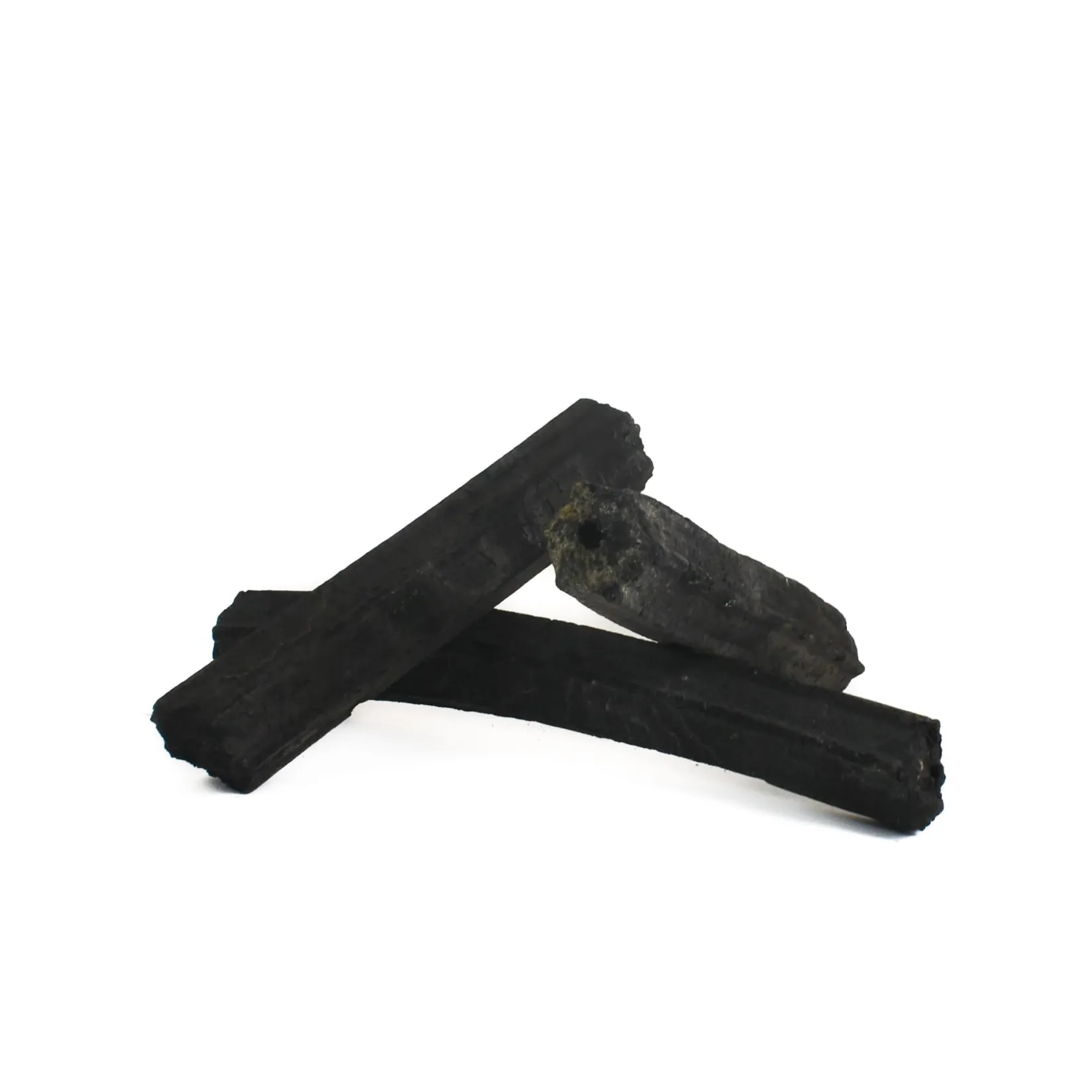 Sawdust charcoal is strong and dense with a hexagonal shape that makes it easy to store and stack, with each piece measuring about 40-50cm long. Each piece has a round hole through the middle which allows air to flow through for efficient burning. You can break the briquettes into smaller pieces for an even faster, hotter burn.