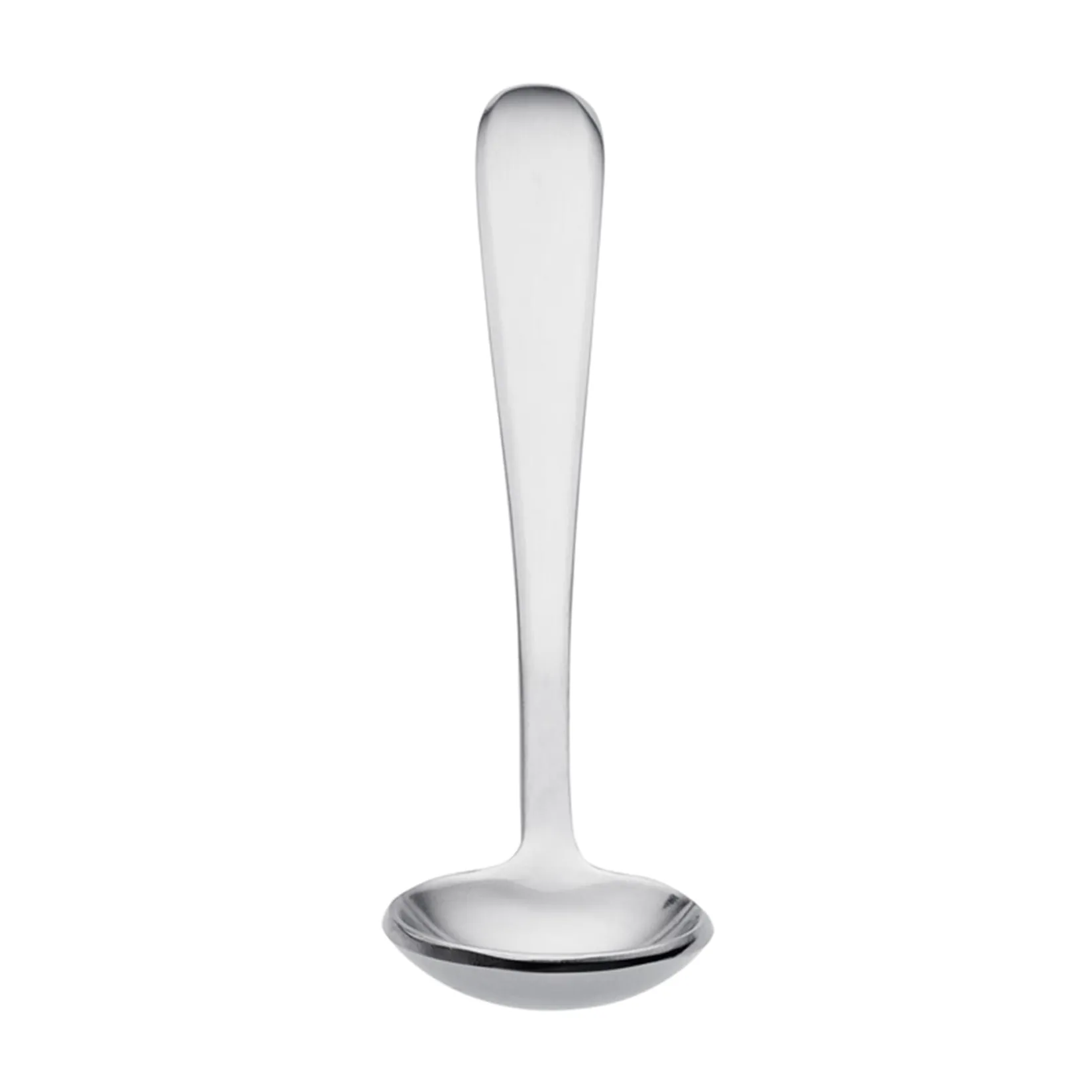 Use this steel spoon to scoop and serve mustard. The small bowl and slender handle can reach inside small and narrow jars. Add a dollop of Dijon or wholegrain mustard to sandwiches or salad dressings.