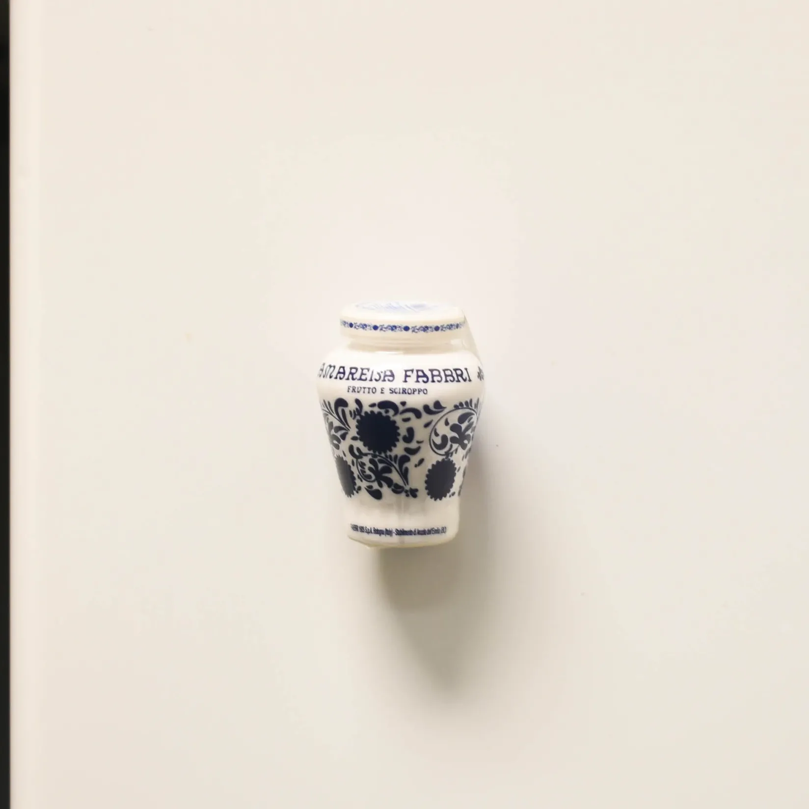 The Fabbri Amarena cherries magnet is a fun piece of kitchen decor for foodies with a sweet tooth. It’s decorated to look like the blue and white ceramic jars that Fabbri fills with their famous Amarena cherries. This pretty magnet will bring la dolce vita to your fridge or any other magnetic surface.