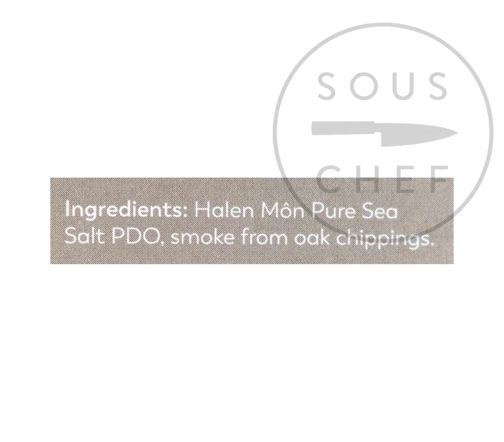 Product formulations and details may change. For the latest ingredients and allergen information always check product packaging prior to consumption. Ingredients: Halen Môn Pure Sea Salt PDO, smoke from oak chippings.